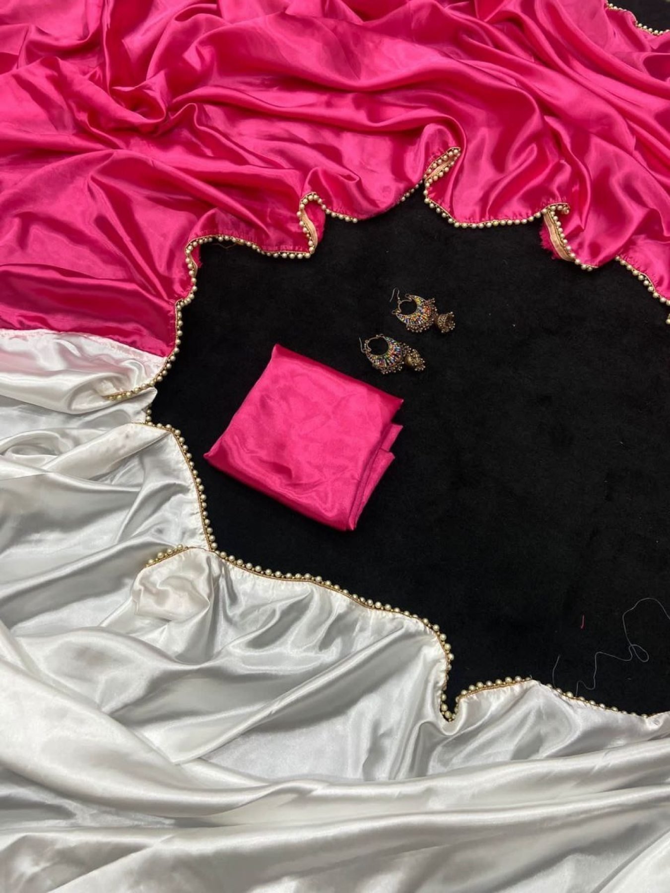 Stay beautiful with our new half half satin saree collection with beautiful moti lace border