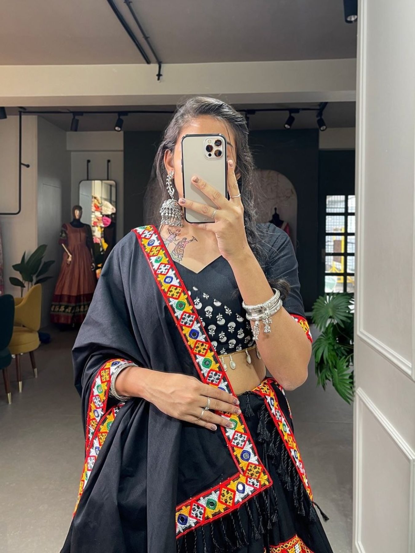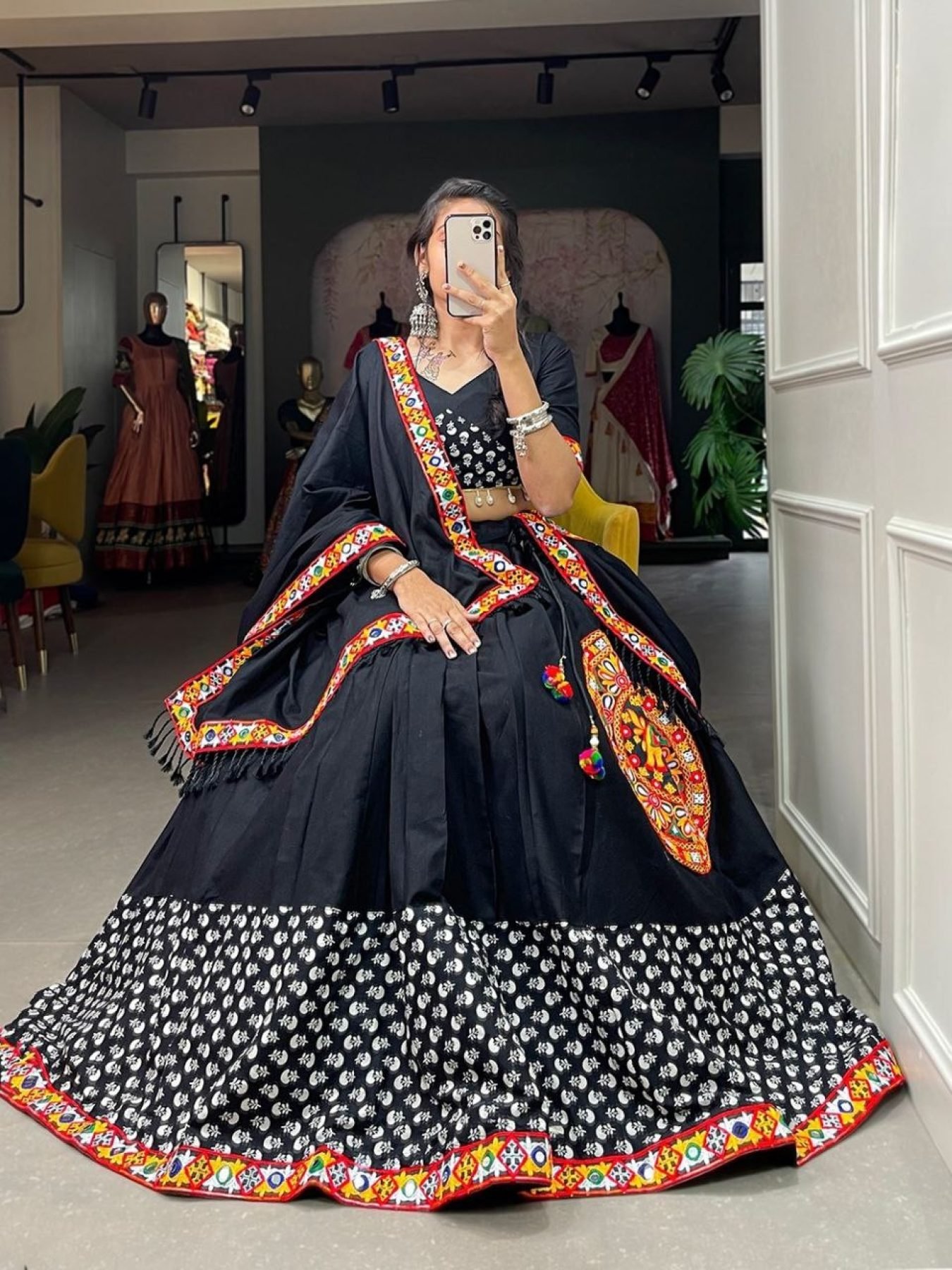 BLACK PURE COTTON PRINTED GAMTHI WORK GUJARATI CHANIYA CHOLI