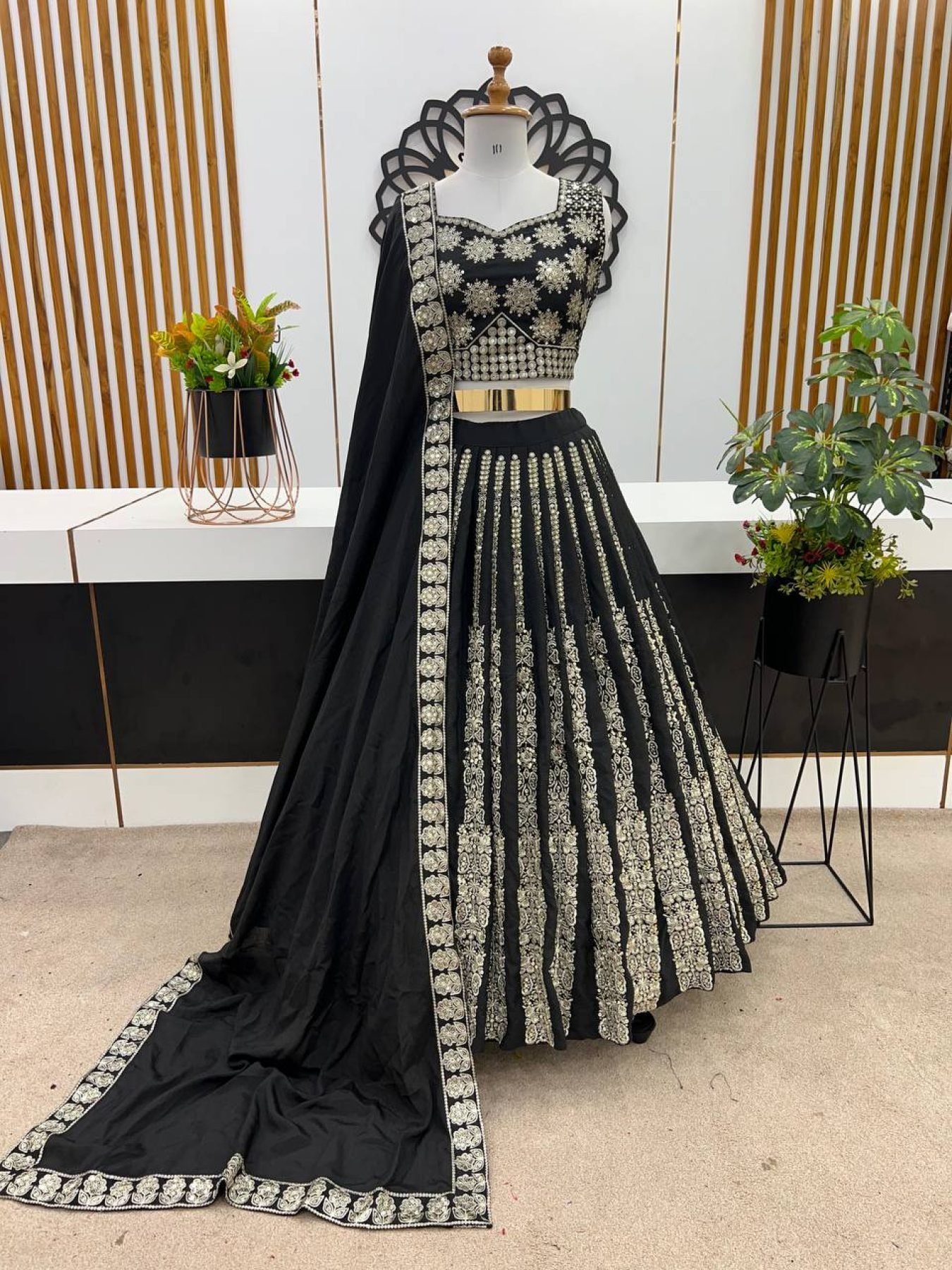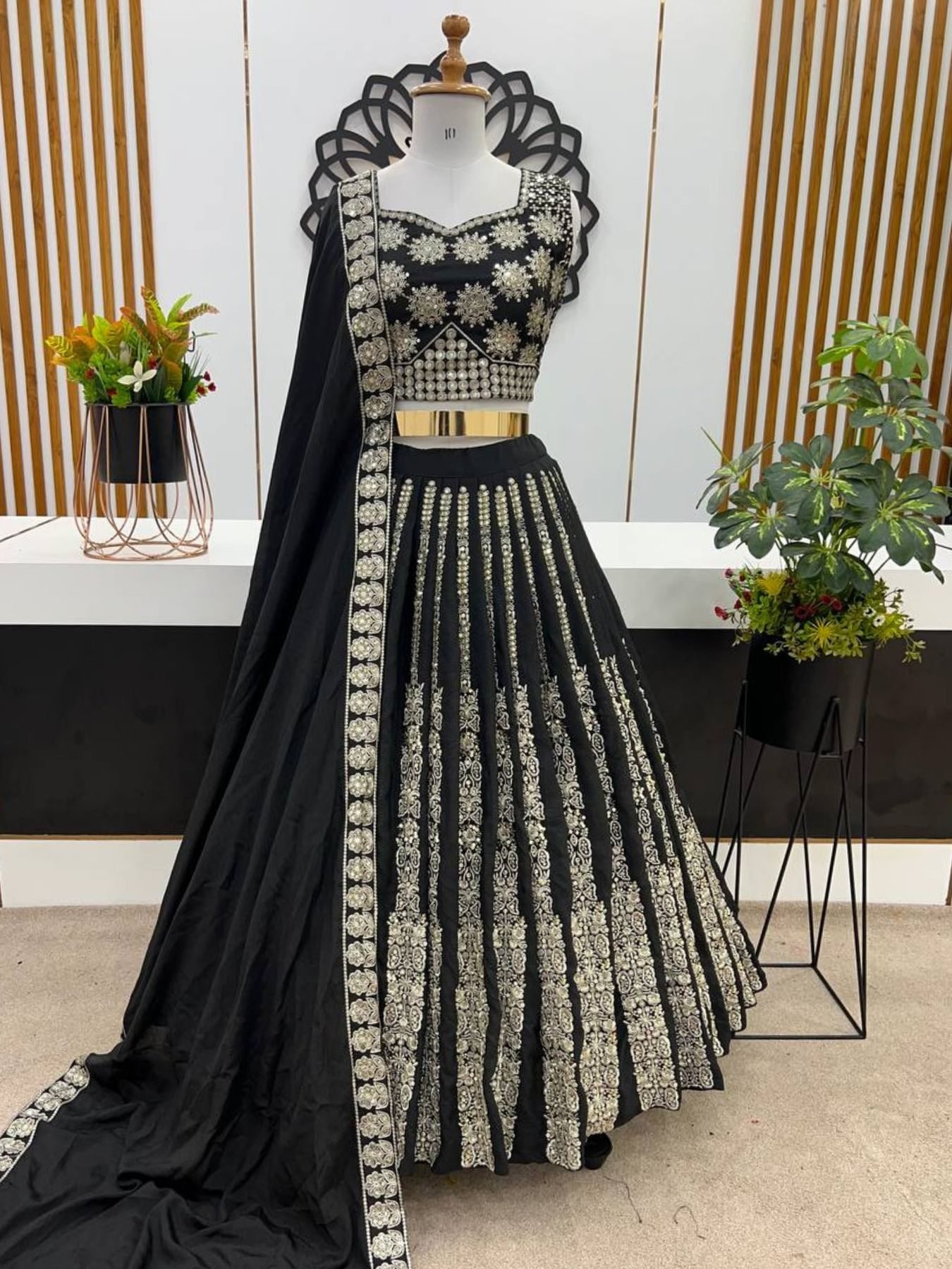 Black Silver Designer Chinnon Lehenga Set Bold Party Look for Global Events