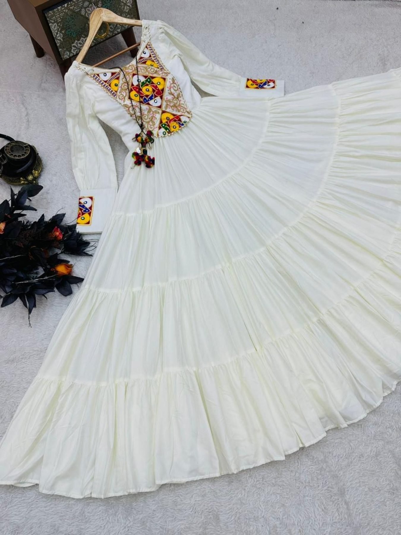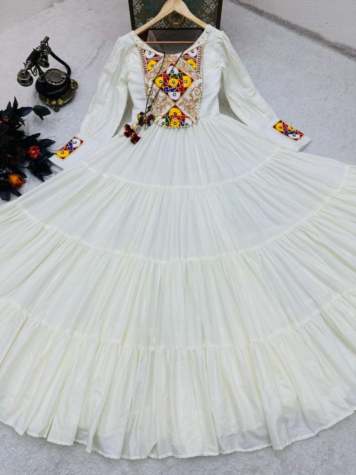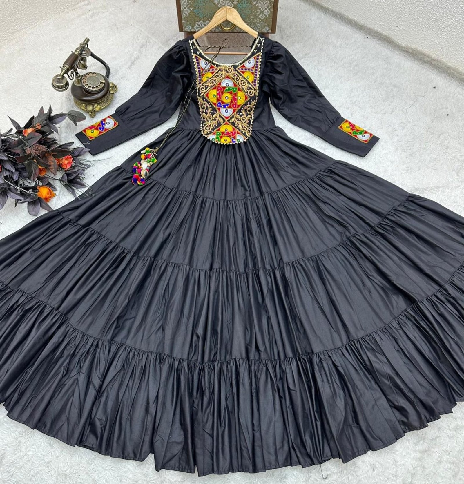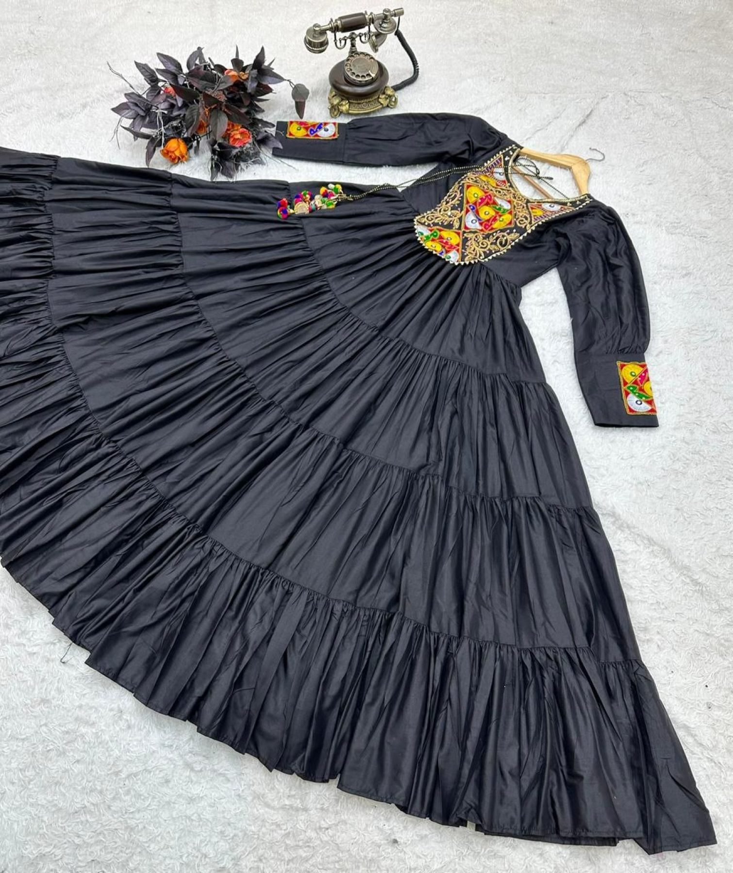 Buy Navratri Dal Silk Embroidery Sequence Work Gown