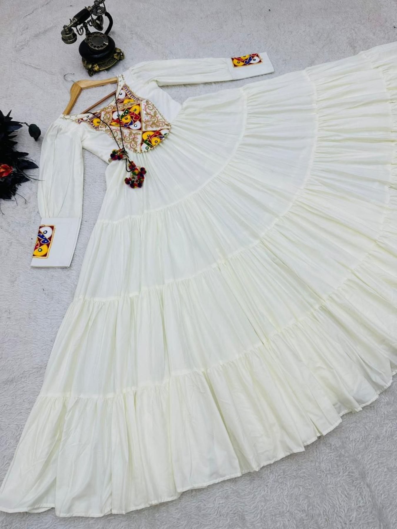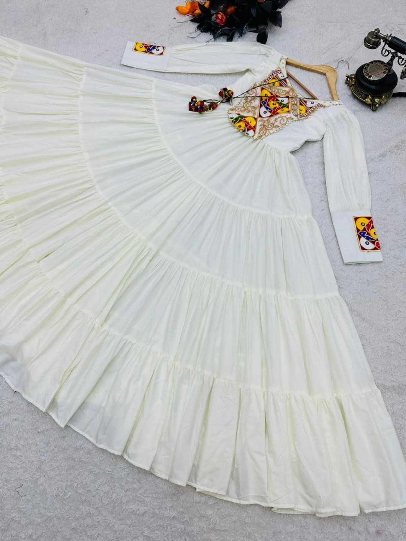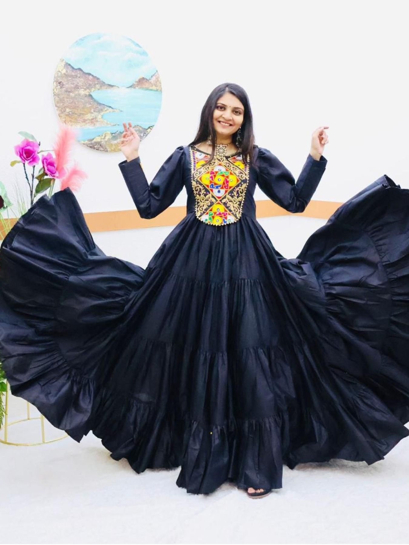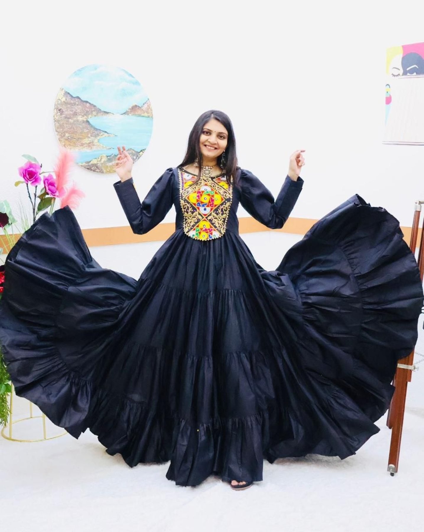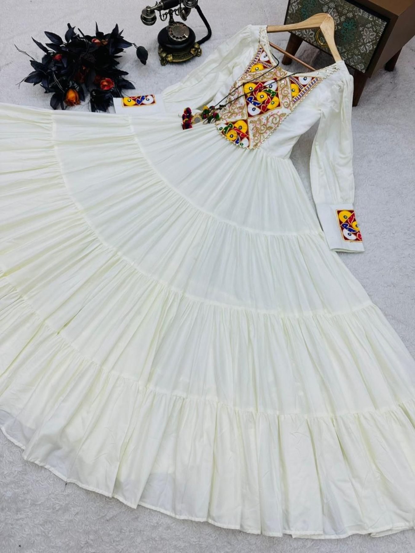 Buy Navratri Dal Silk Embroidery Sequence Work Gown
