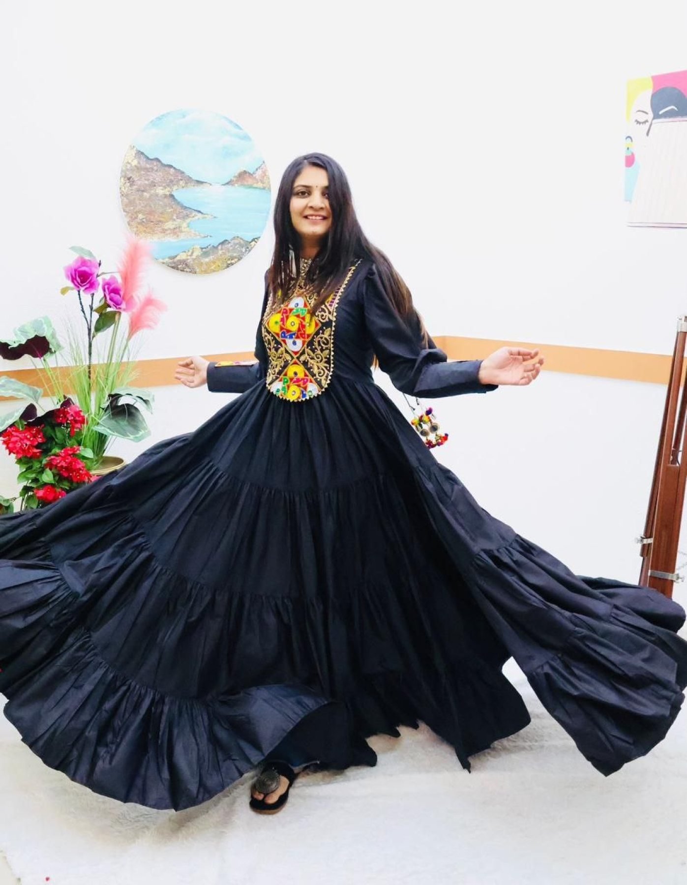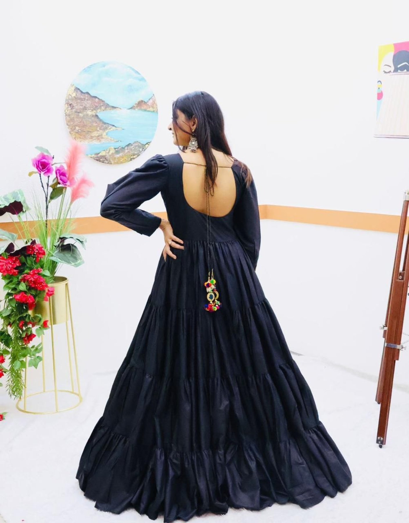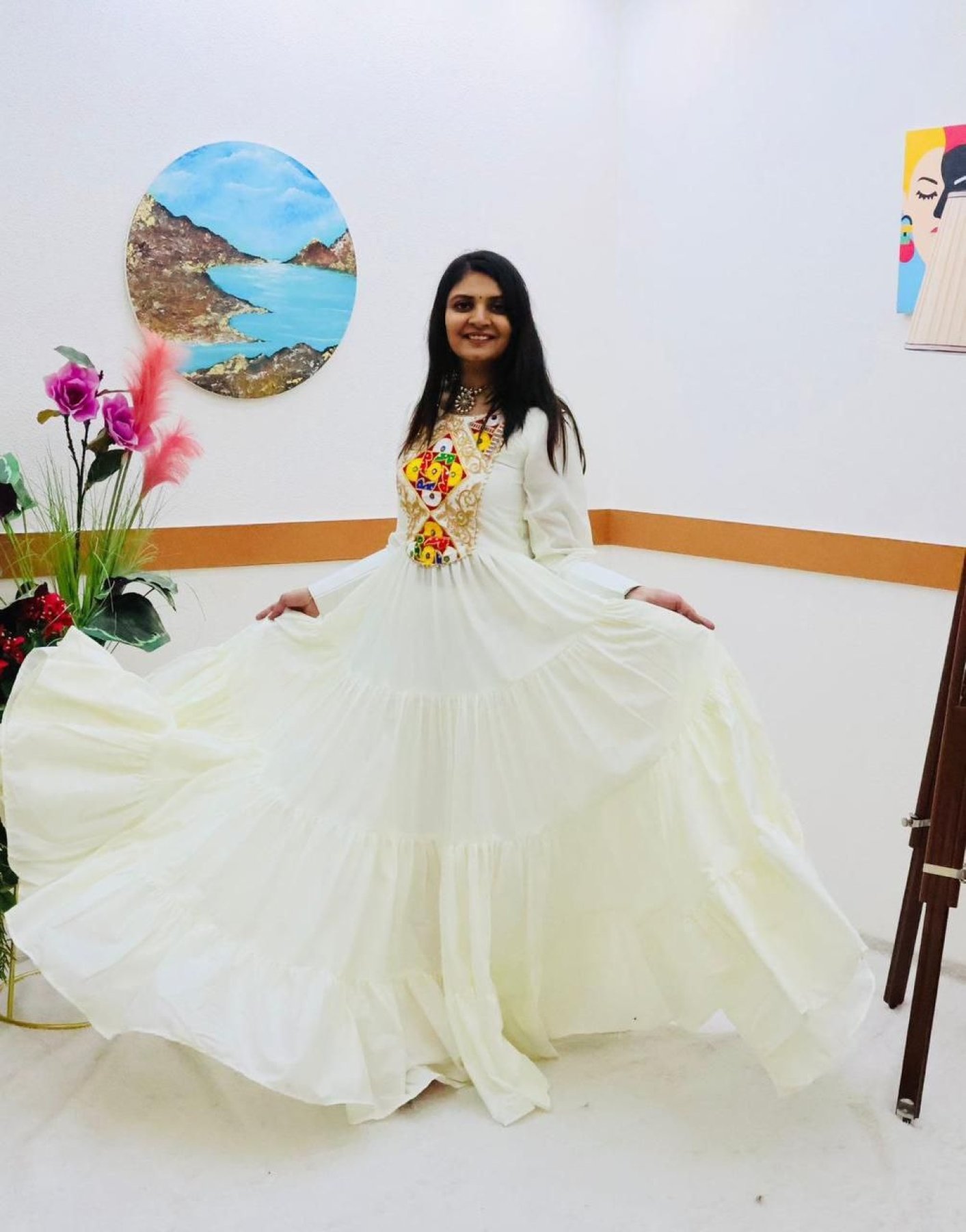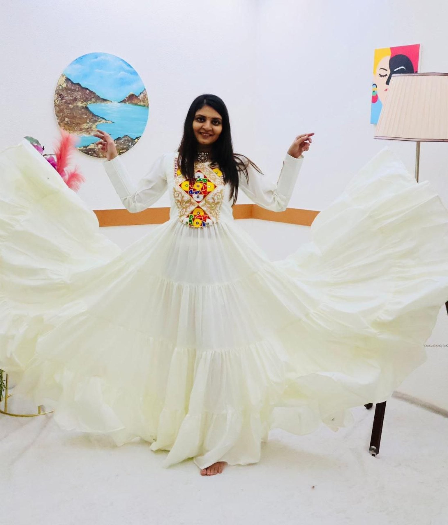 Buy Navratri Dal Silk Embroidery Sequence Work Gown