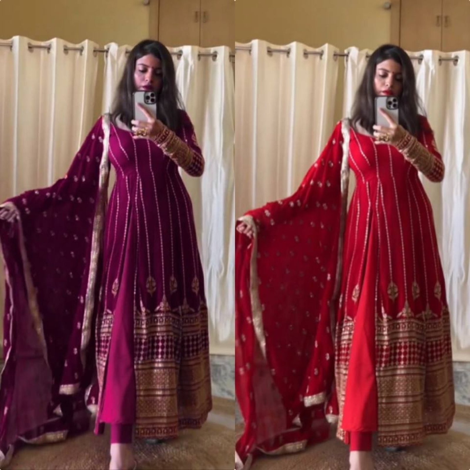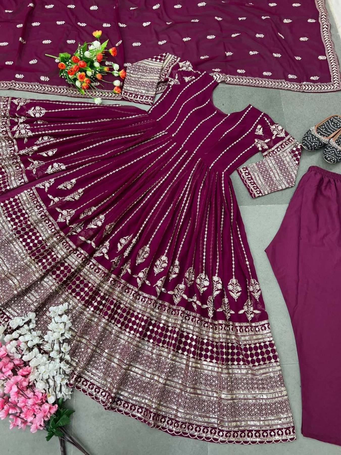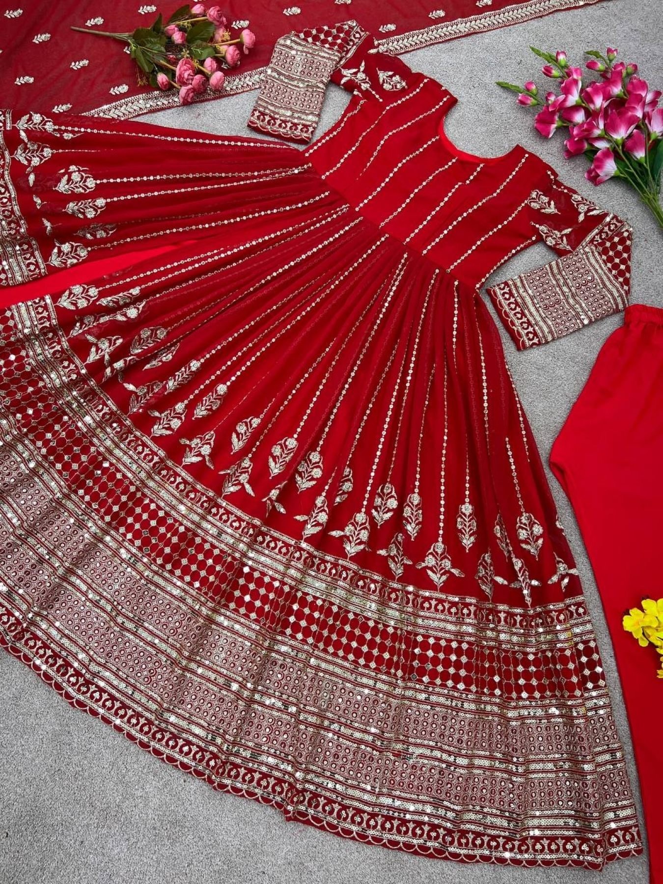 Gown Fabric :Faux Georgette With *Full Heavy Embroidery Sequence Work With Fancy Style Cut* with Full Sleeve*