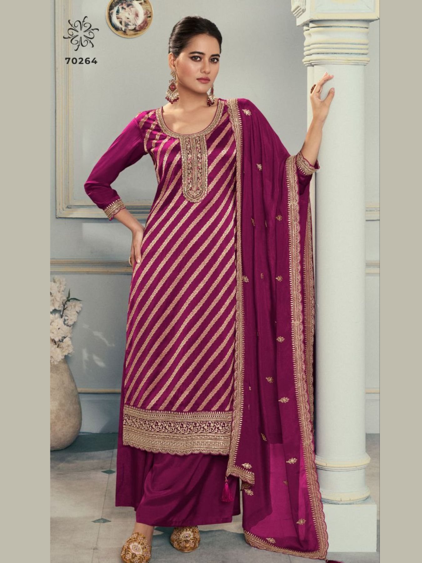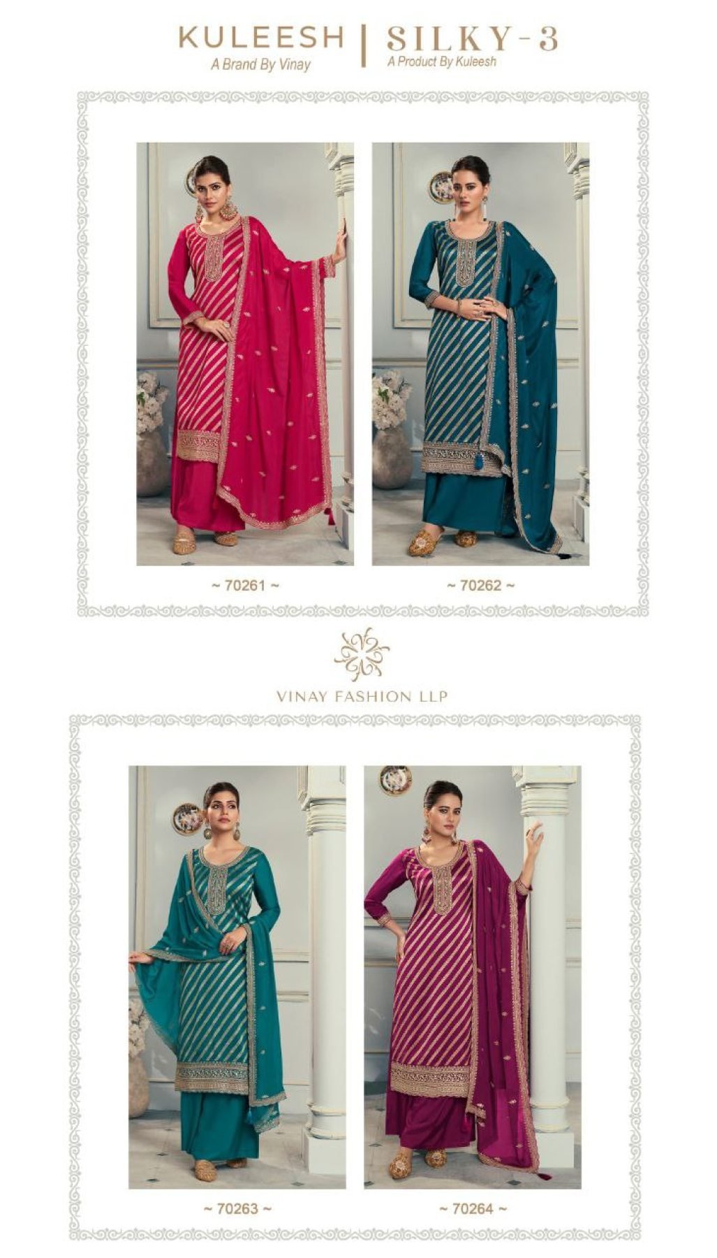 Upgrade your ethnic collection with this premium dress material set, featuring rich embroidered lotus silk jacquard for the top. Paired with a smooth santoon bottom and an elegant embroidered Rangoli georgette dupatta, this set offers the perfect blend of tradition and style. Ideal for custom tailoring into suits for festive and party wear.