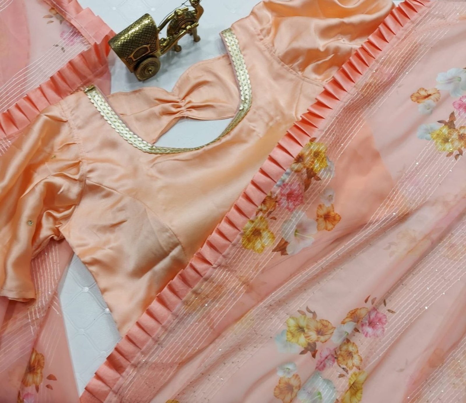 SAREE : GEORGETTE DIGITAL PRINTED SAREE WITH BEATIFULL HEAVY FILL BORDER ORDER LACE ON SAREE