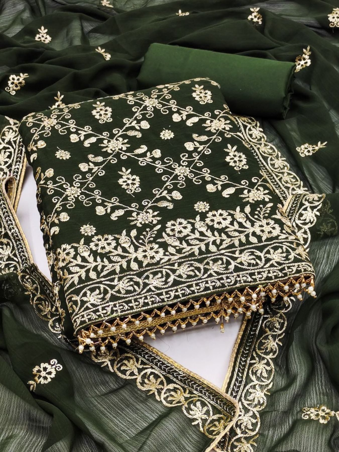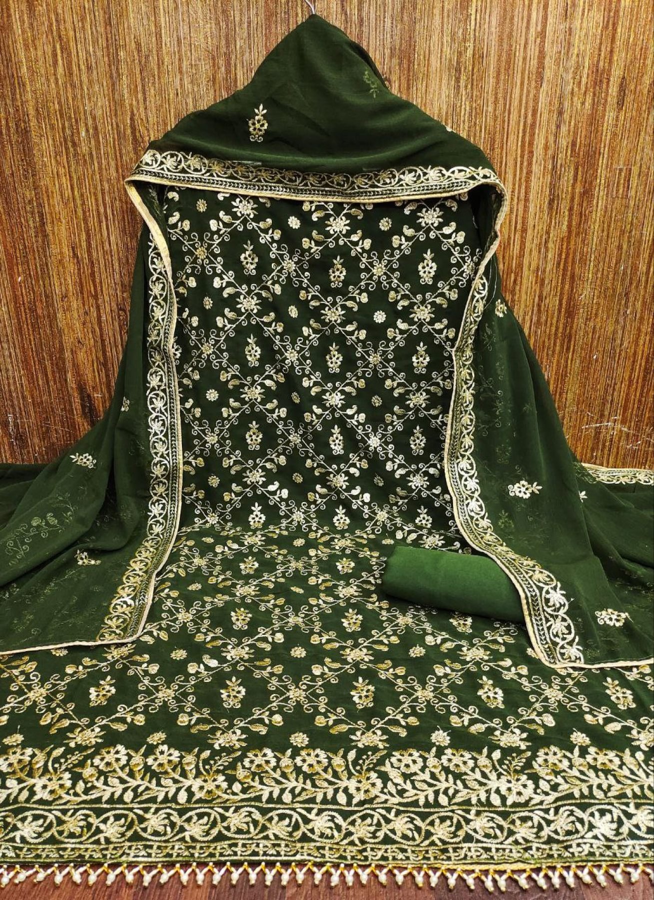 Green Georgette Multi Sequence Work Semi-Stitched Suit with Dupatta Cultural Wear