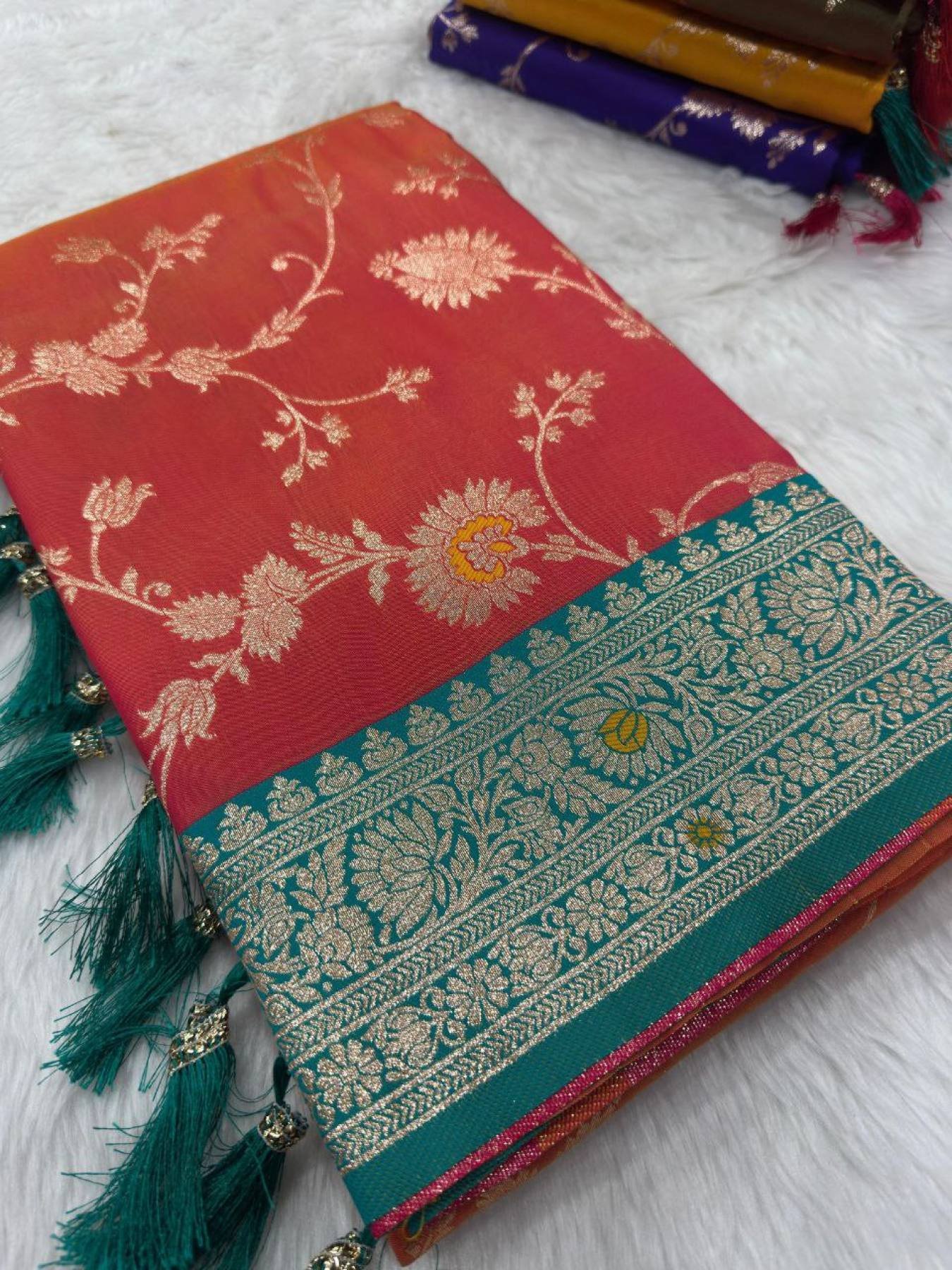 Pallu: Contrast Meenakari Design with Tassels