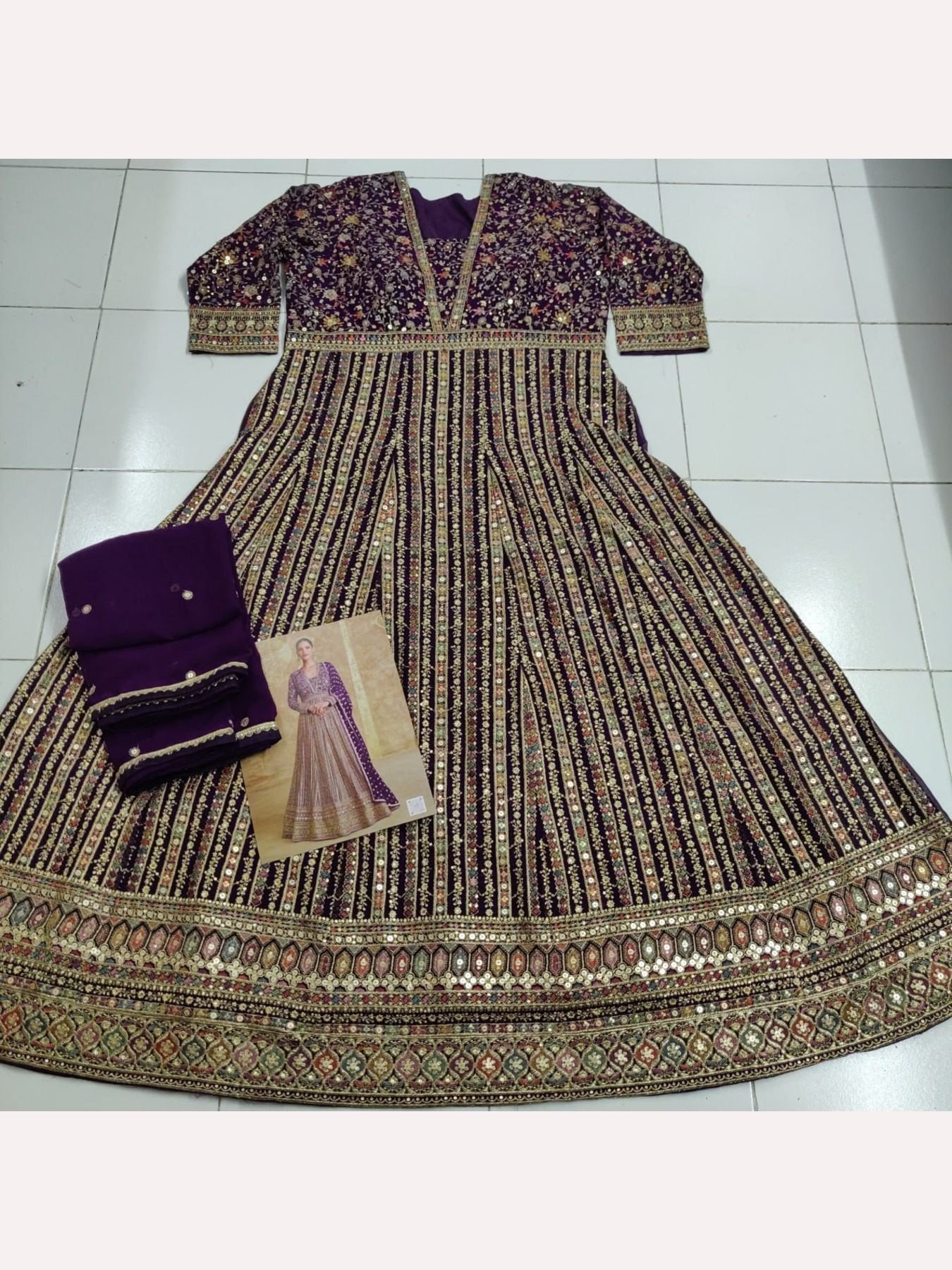 Heavy Real Georgette Embroidery Work Anarkali Gown In Wholesale Rate Surat