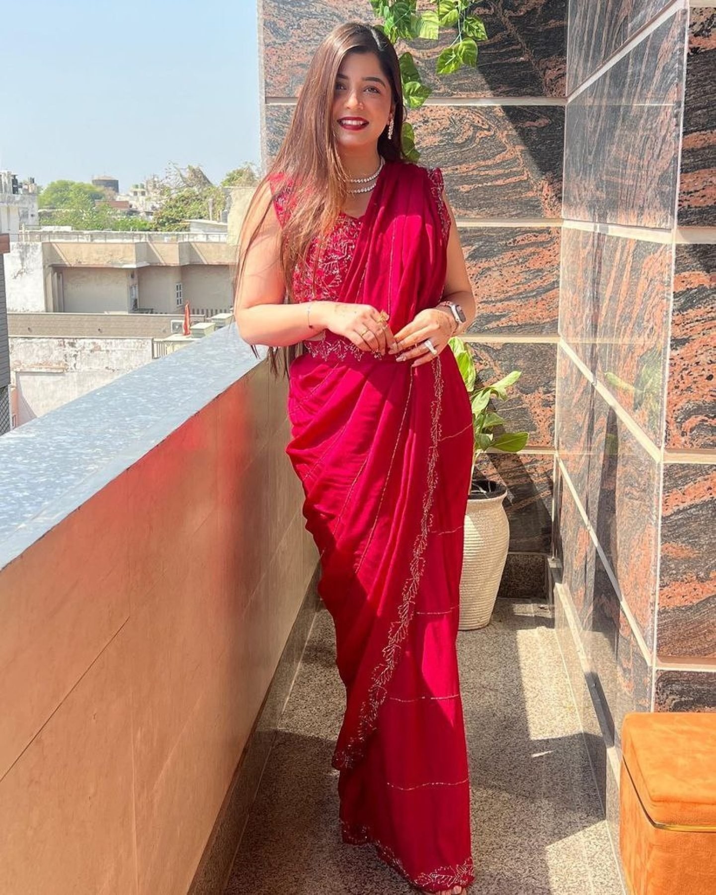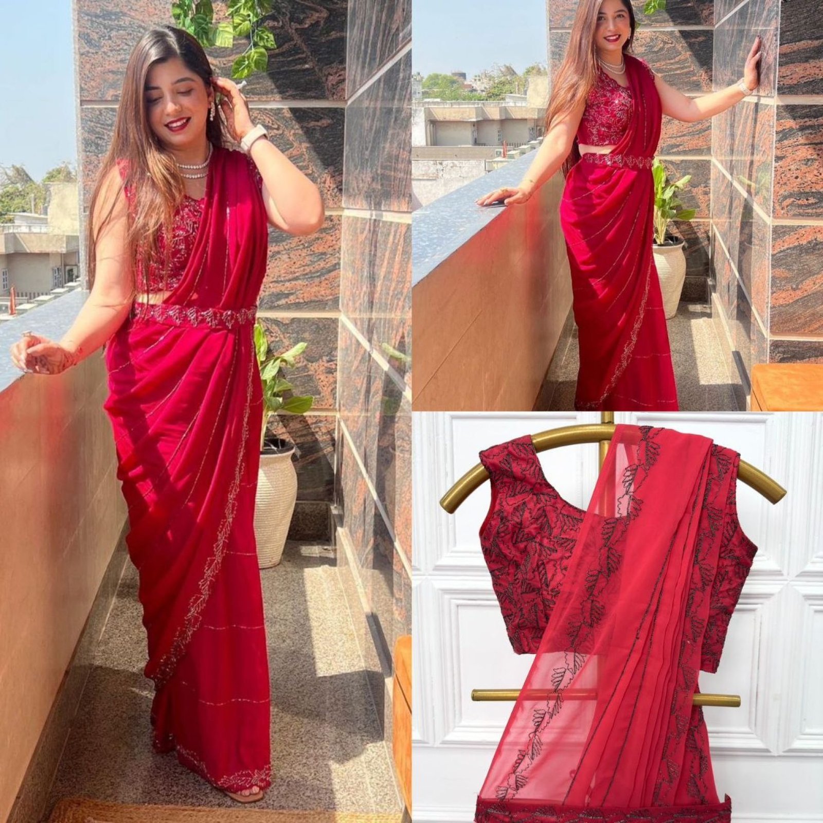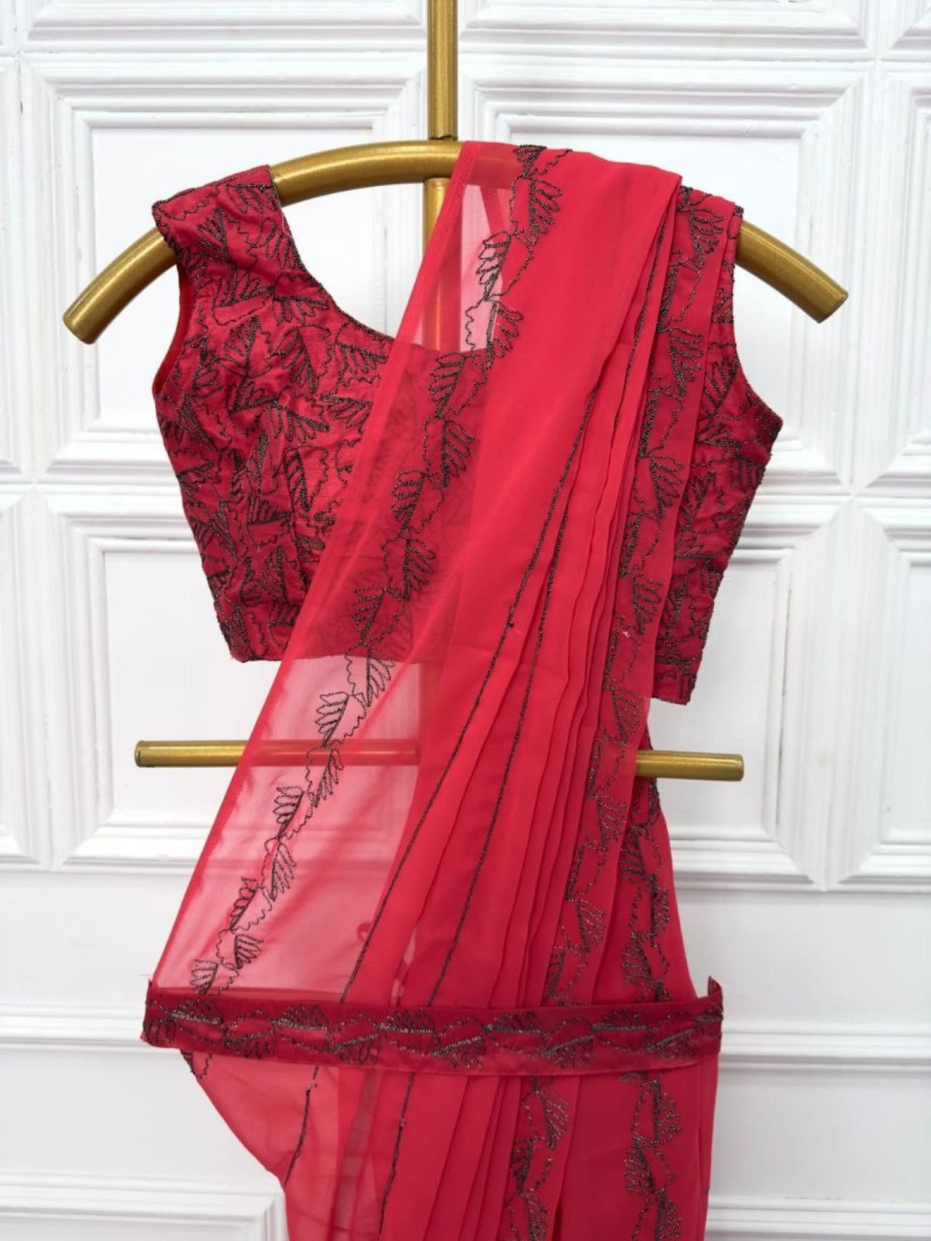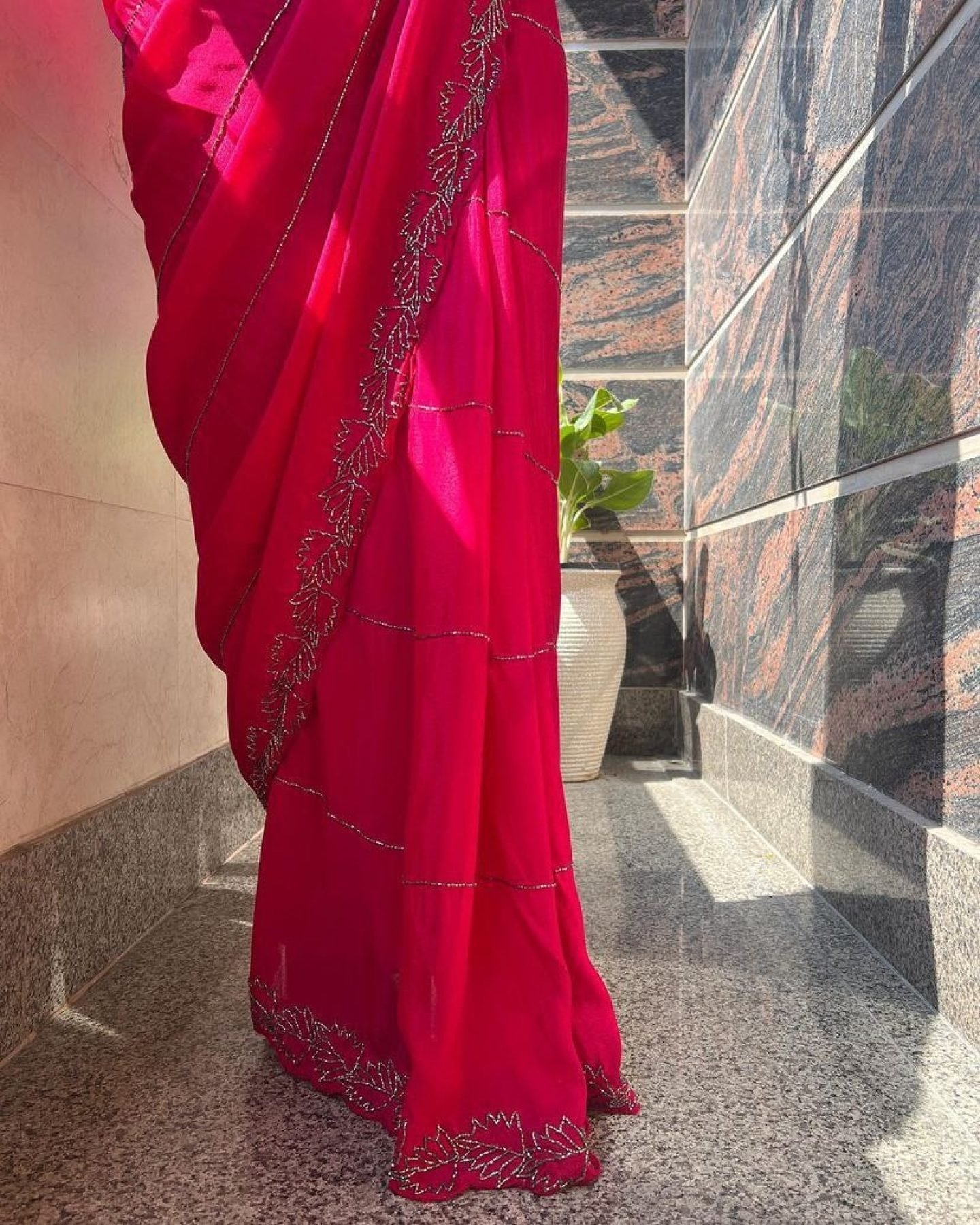 Hot Pink Georgette Saree With Dori Embroidery Work