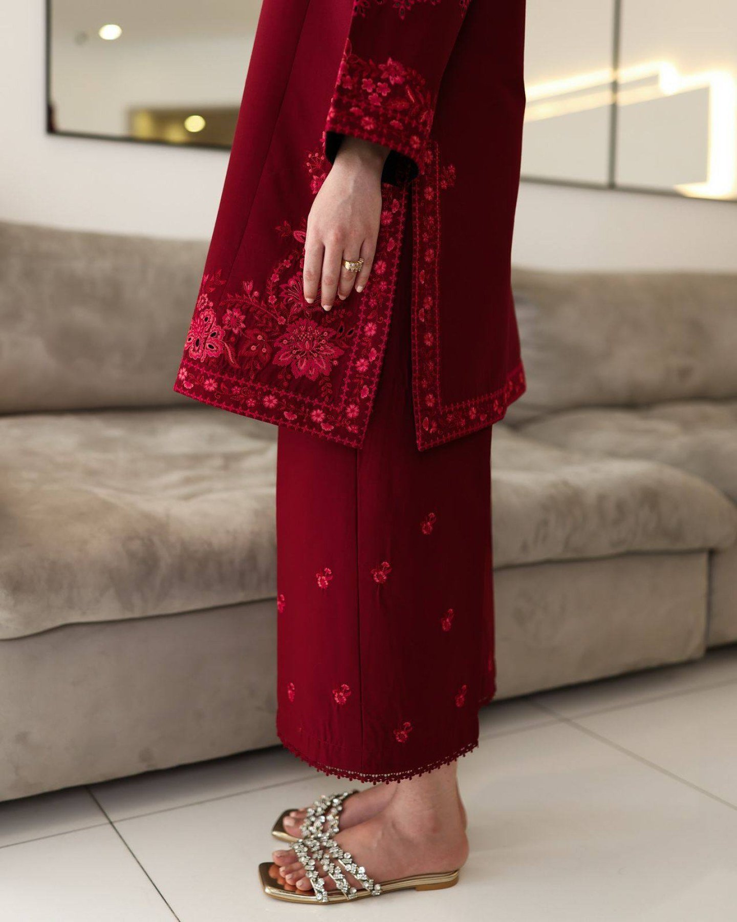 Size ChartThis newly launched maroon embroidered cord set is designed in premium rayon cotton fabric with soft micro inner for day-long comfort. The Kurti features exquisite thread embroidery on a beautifully finished silhouette, paired with a matching embroidered Plazzo enhanced with fancy lace detailing. Fully stitched up to XXL, this set is perfect for festive wear, office functions, family events, and premium reseller collections. Best-selling option for wholesalers, resellers, and export buyers seeking high-quality ethnic wear.