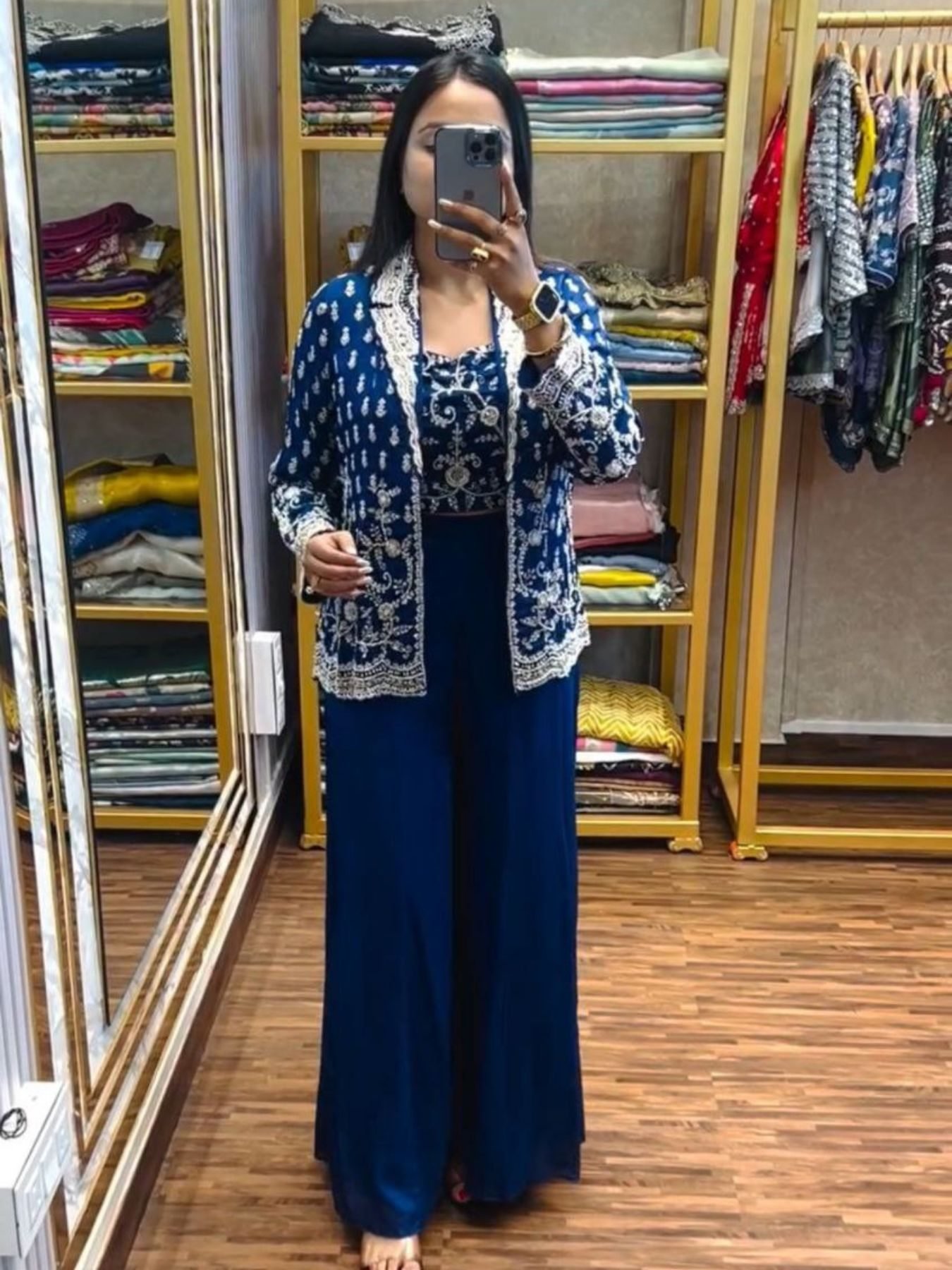 Indo Fashion Sharara with Jacket Set Trendy Ethnic Womens Party Wear Designer 3 Piece Ready to Wear Koti Sharara Collection