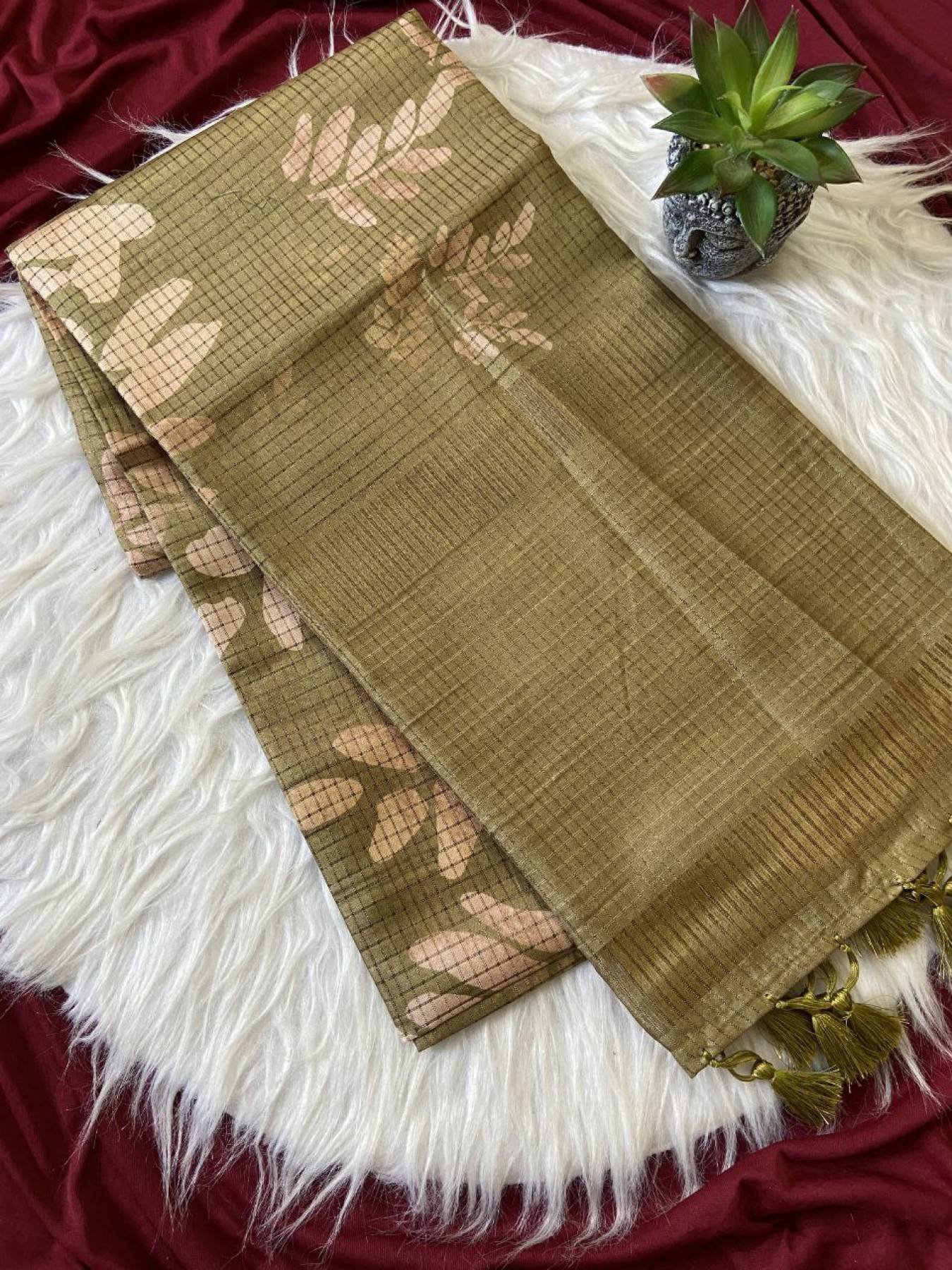 Presenting our Soft Tussar Silk Sarees — a blend of traditional elegance and modern artistry. Crafted with beautiful prints and an attractive checks design, these sarees offer a luxurious drape and sophisticated style. Completed with delicate tassels and a matching printed blouse, this saree brings a refreshing new look for festive occasions or casual elegance.