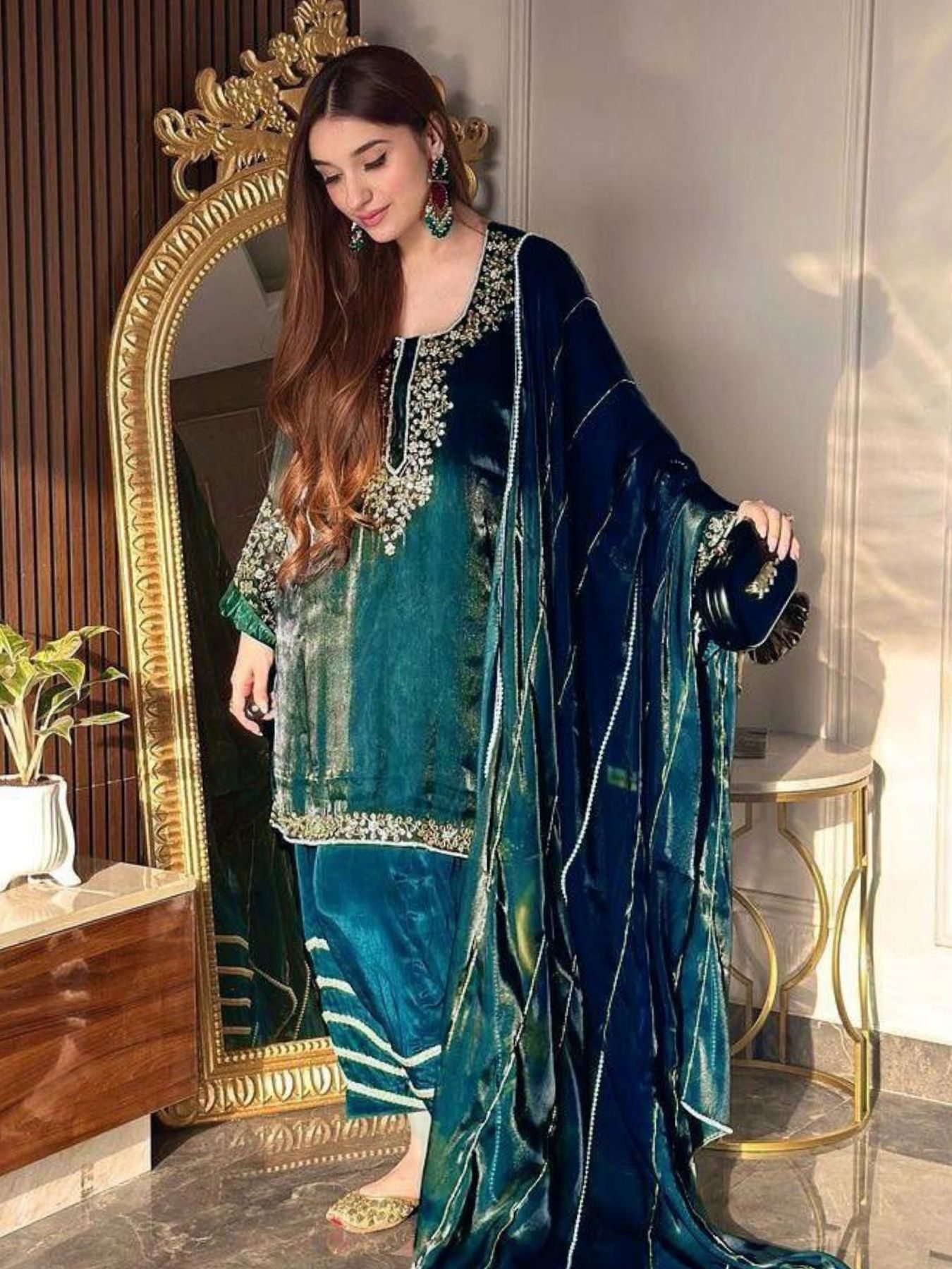 Jimmi Chhoo Suit Plazzo and Dupatta Set for Celebration Ready to Wear Outfit