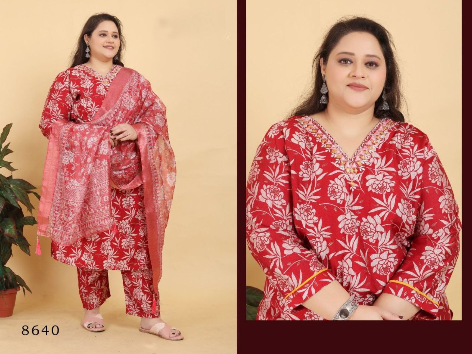 Size ChartUpgrade your wardrobe with this luxurious and export-quality plus-size suit set. Made from premium Rayon fabric this ensemble is designed for elegance, comfort, and style. Featuring intricate handwork, functional pockets, and a beautiful digital print Organza Jacquard dupatta, this set is perfect for festive occasions, casual wear, and boutique collections.