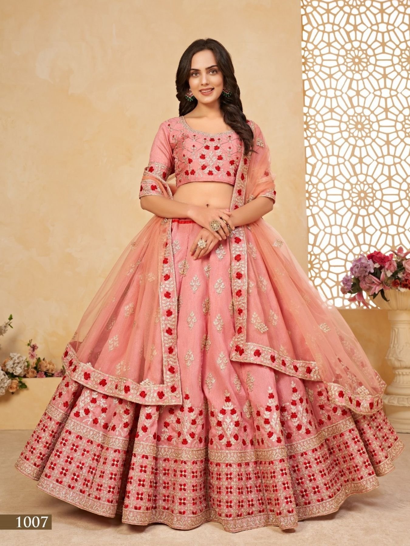 Light pink dori sequins embroidered silk lehenga choli and dupatta