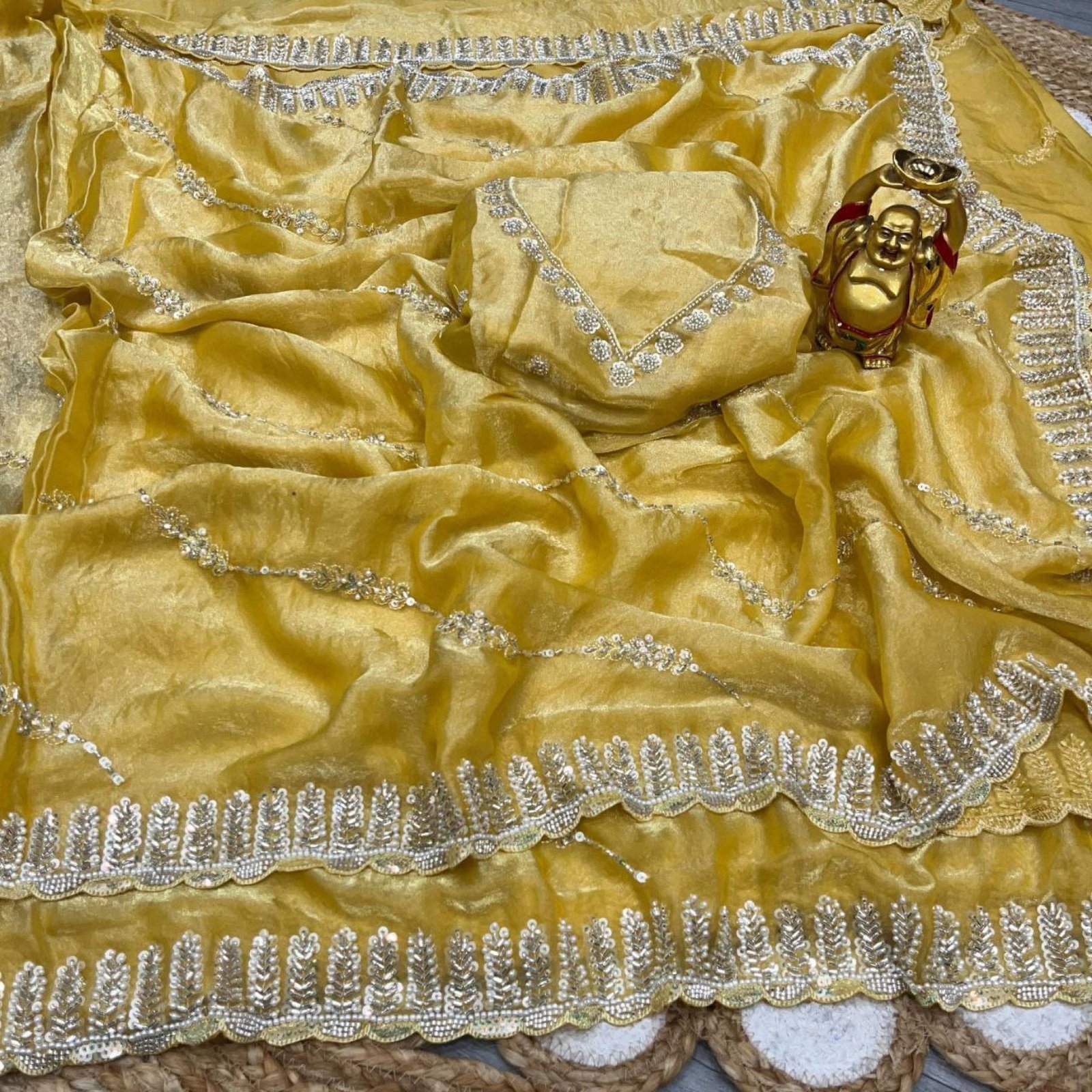 Luxury Space Silk Handwork Saree with Original Beads Work For Party Wear