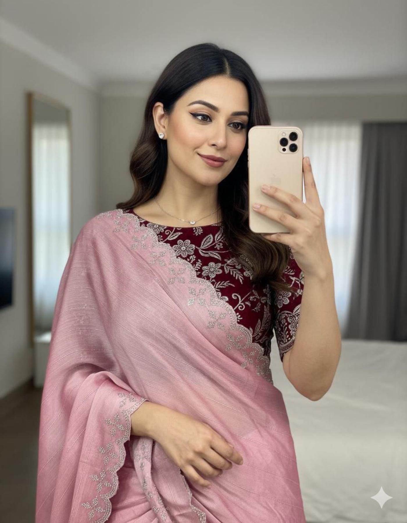Paired with a beautifully designed embroidery work blouse, this designer set is perfect for weddings, parties, and boutique collections.