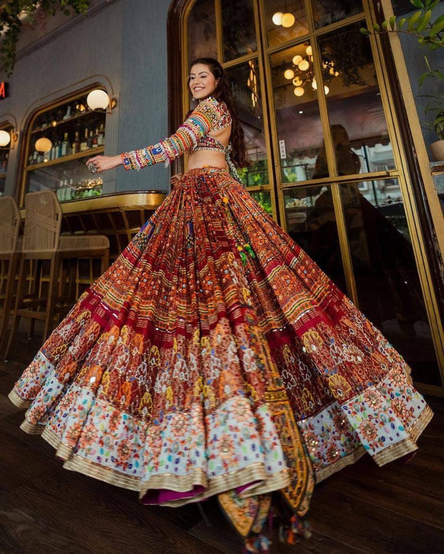 LEHENGA : HEAVY BUTTER SILK WITH *REAL MIRROR WORK &. 4 MTR FLAIR *(*FULLY STITCH)