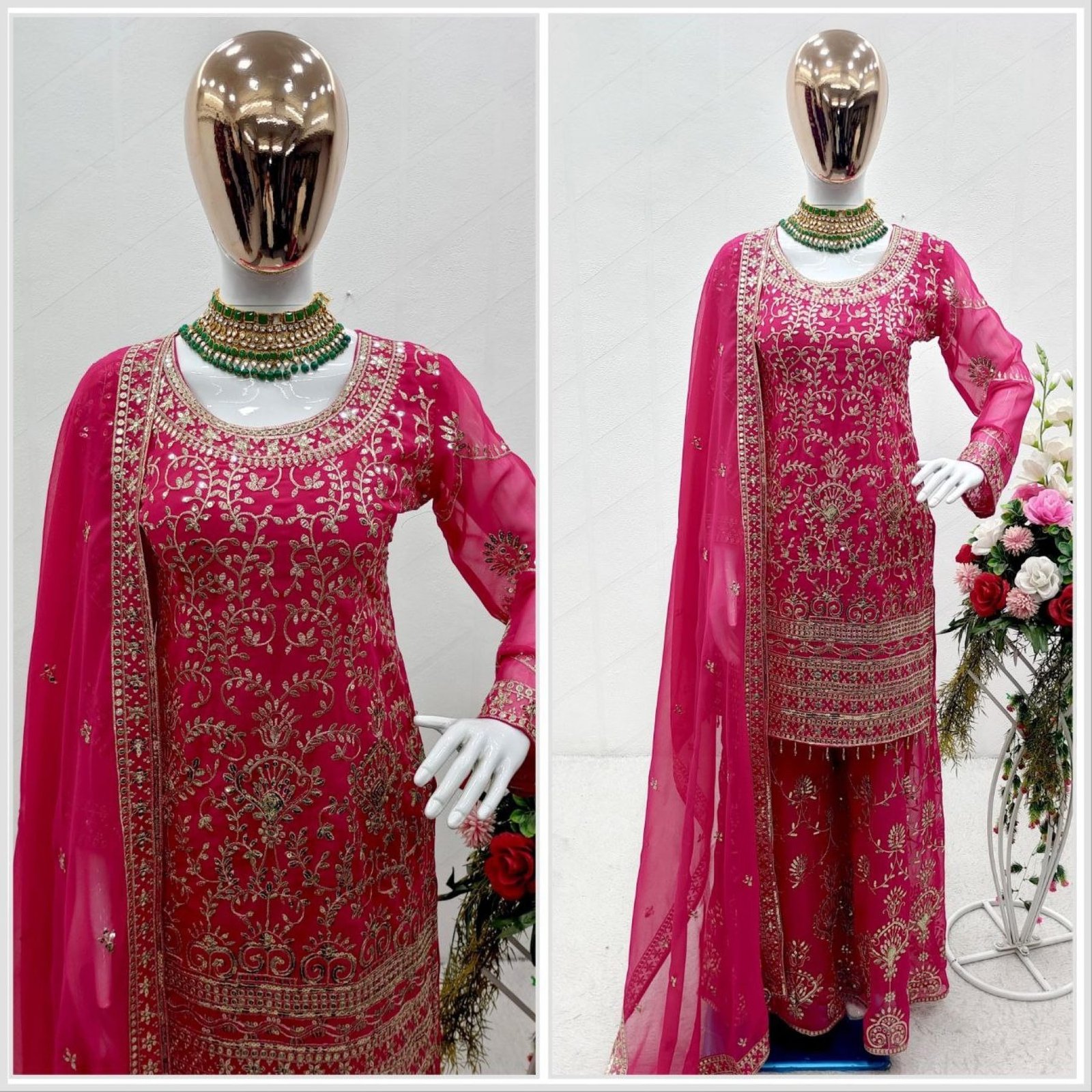 New Designer Fox Georgette With Embroidery Work Plazzo Suits Collection