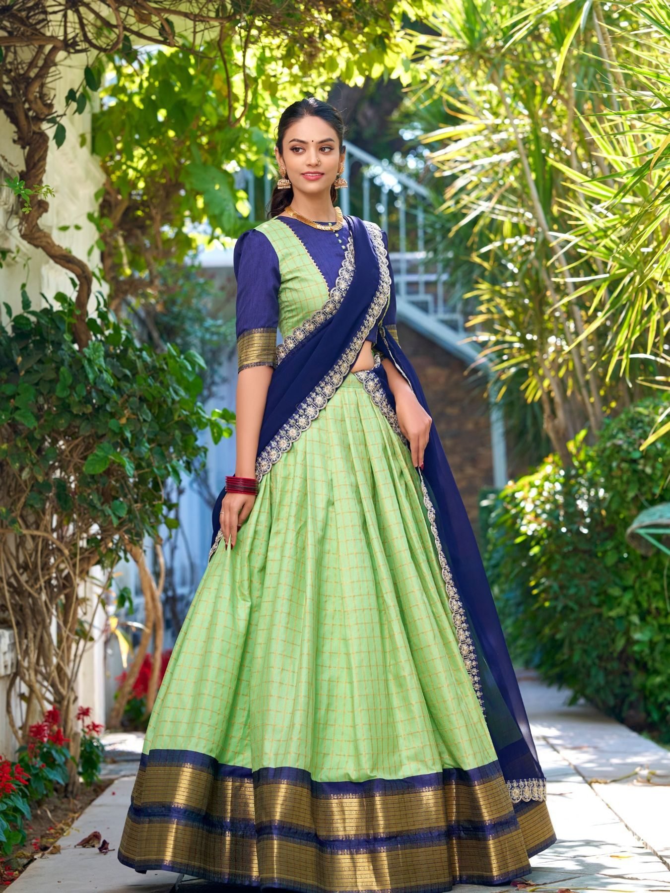New Wedding Collection Readymade Zari Chex Lehenga Choli Half Saree Set South Indian Traditional Voni Style Best Quality