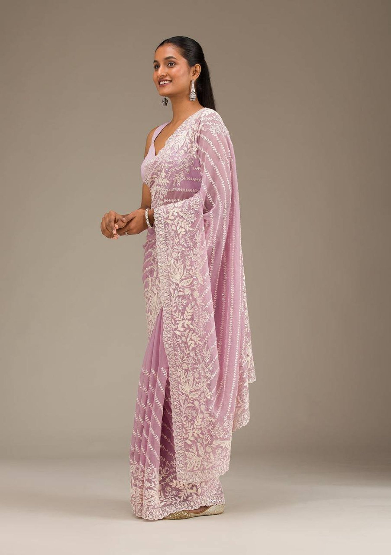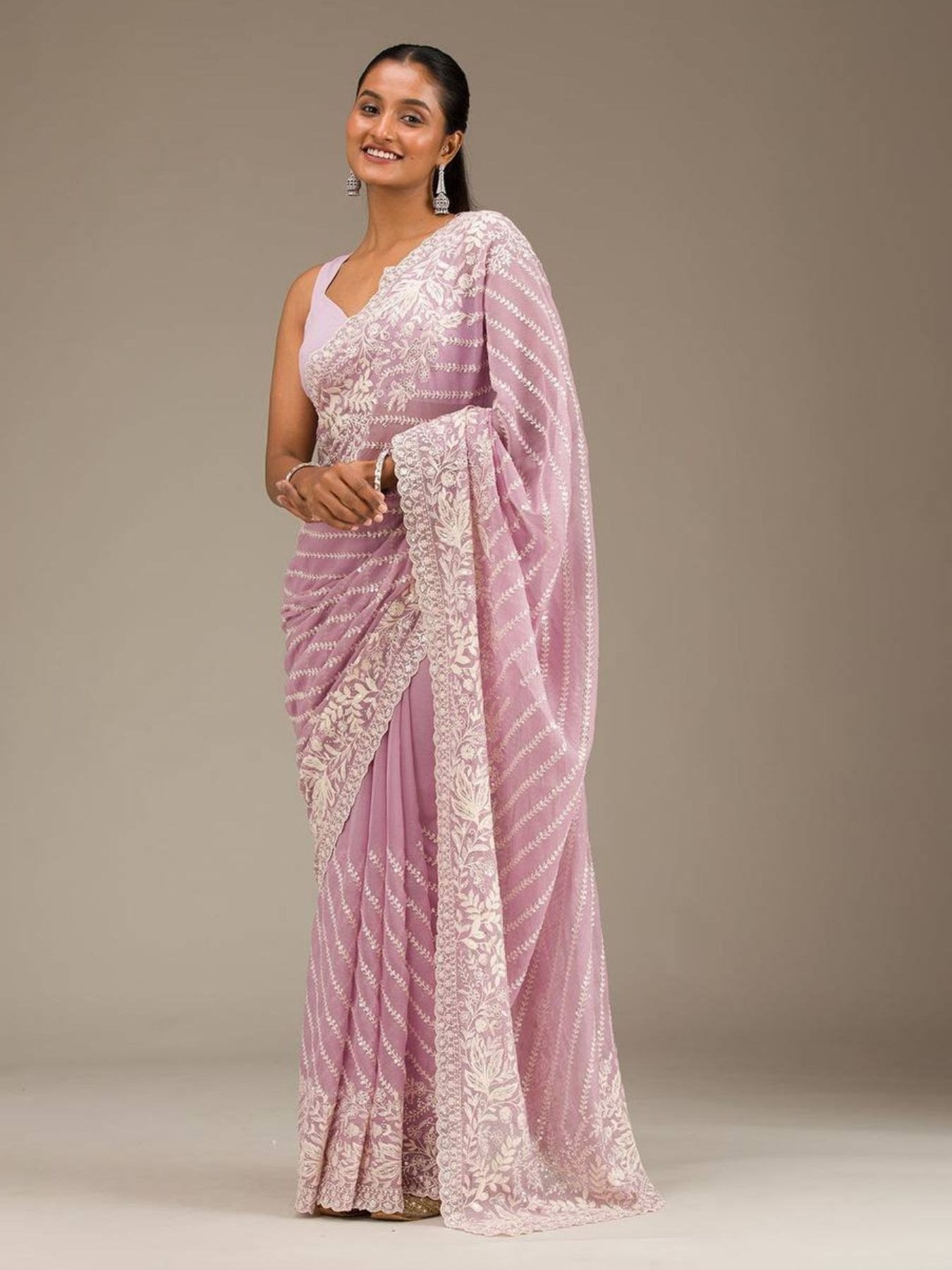 Pastel Fox Georgette Saree Thread and Sequin Embroidery for Summer