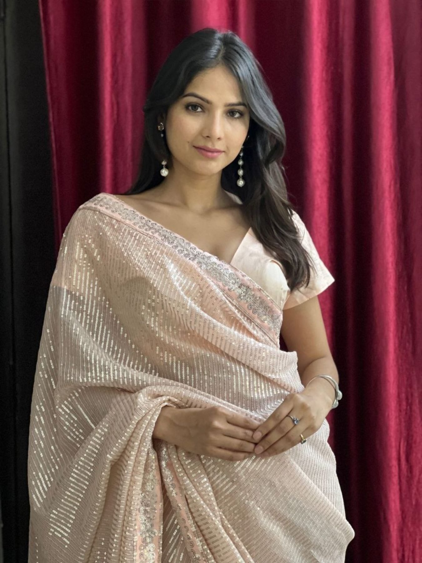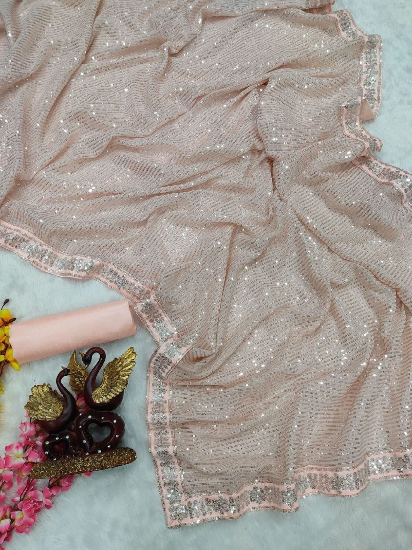 Nice brings you this beautiful and captivating designer saree with sequins magic radiating it's enthralling beauty and enticing feel!