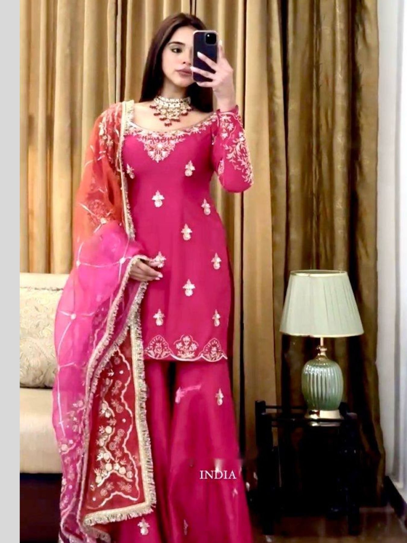 Pink Chinon Silk Sharara with Heavy Sequins Work and Fancy Dupatta Festive Outfit