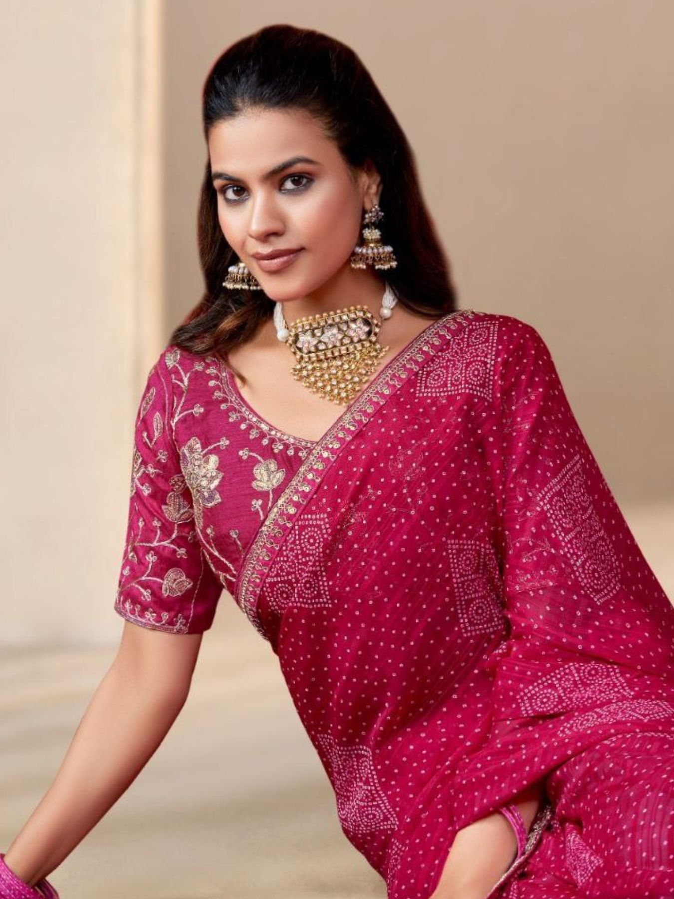 Pink Georgette Bandhani Saree with Embroidered Border Exclusive for Weddings