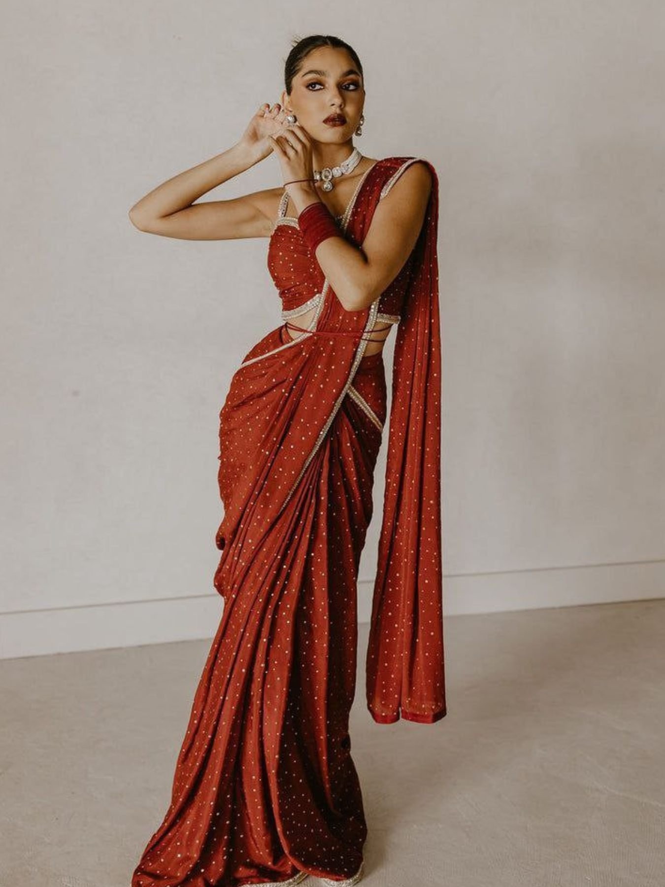 Premium Chinon Silk Saree With Heavy Handwork
