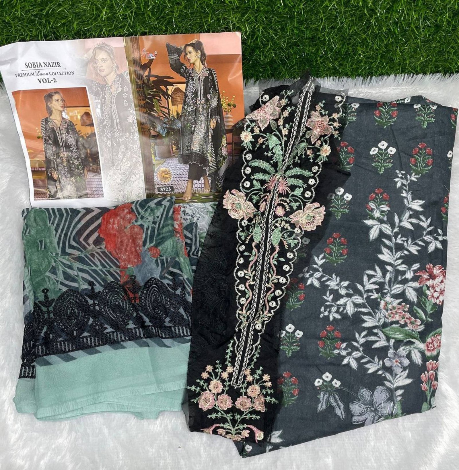 Introducing the Shree Fab Sobia Nazir Premium Lawn Collection Vol. 2 – an exclusive Pakistani Cotton Suit Collection for wholesalers in 2025. Crafted with pure cotton print with patch embroidery, a semi-lawn bottom, and a chiffon/cotton dupatta with embroidery work, this collection is perfect for retailers and bulk buyers. Available as single pieces or bulk orders at the best wholesale & manufacturer rates.