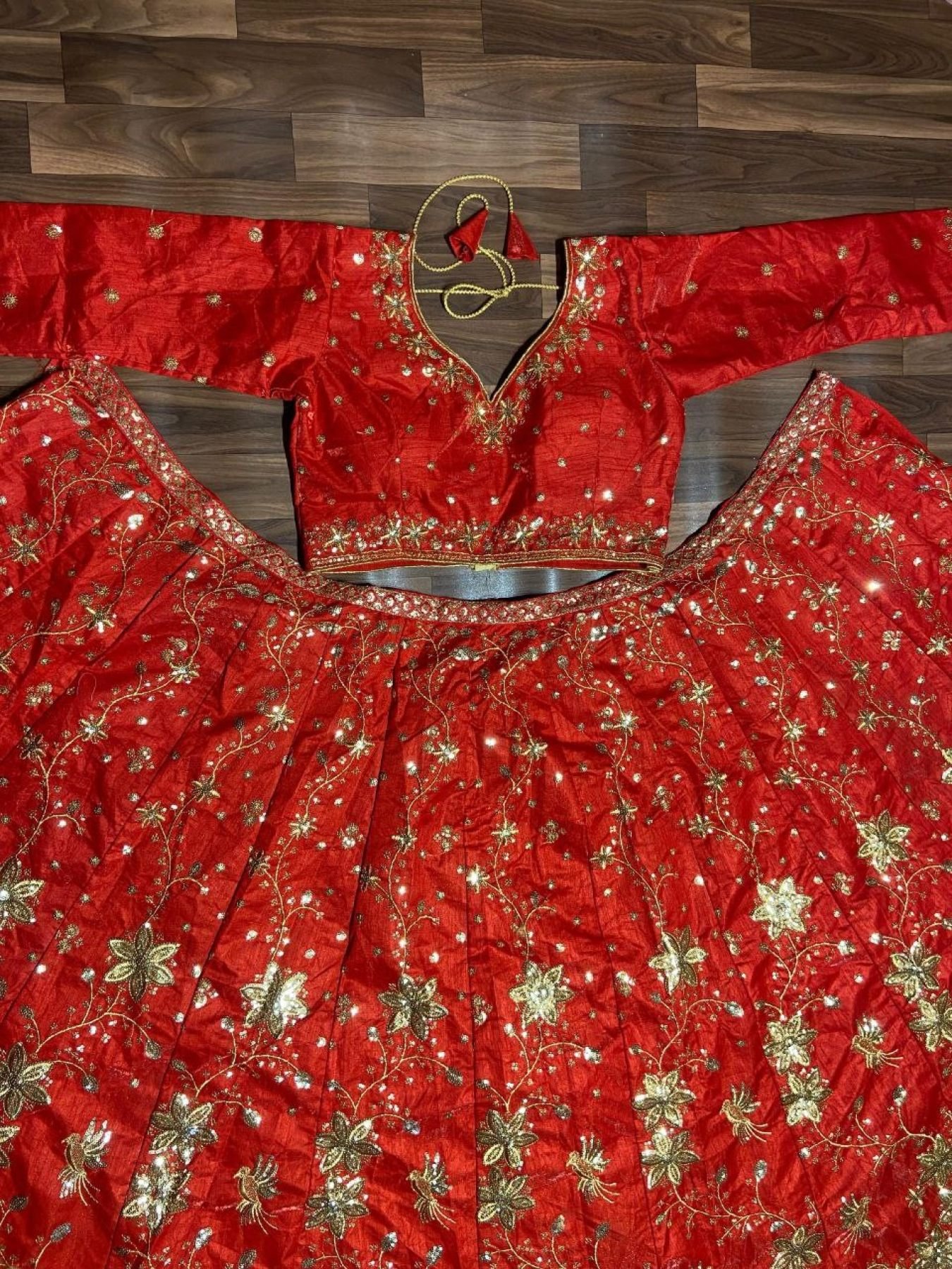 Premium Satin Bangalori Sequence Work Bridal Lehenga Choli