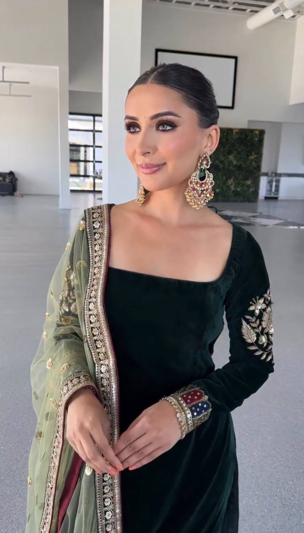 Experience premium luxury with this Pure Heavy Viscose Velvet suit set featuring rich coding sequence embroidery and full embroidered sleeves.