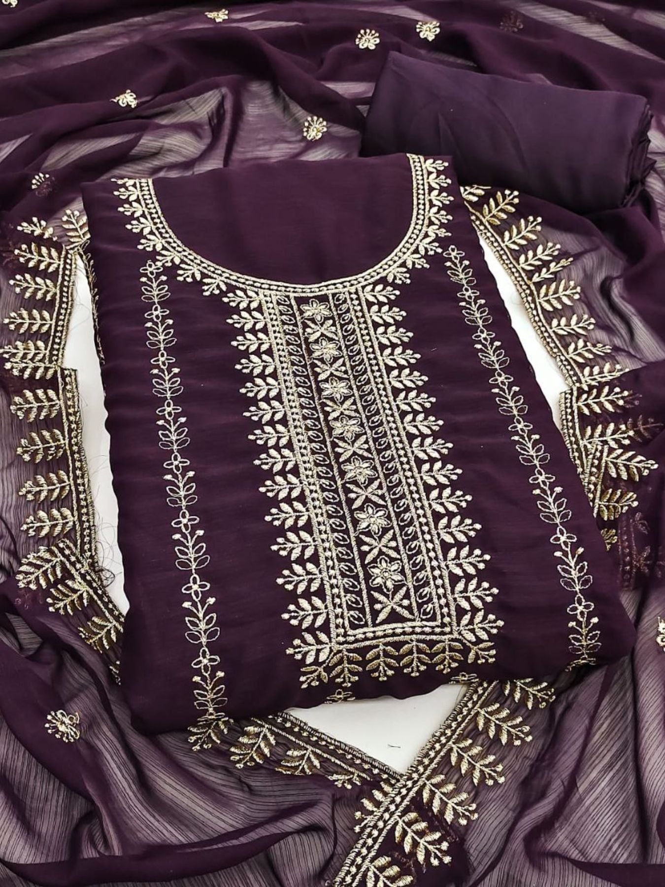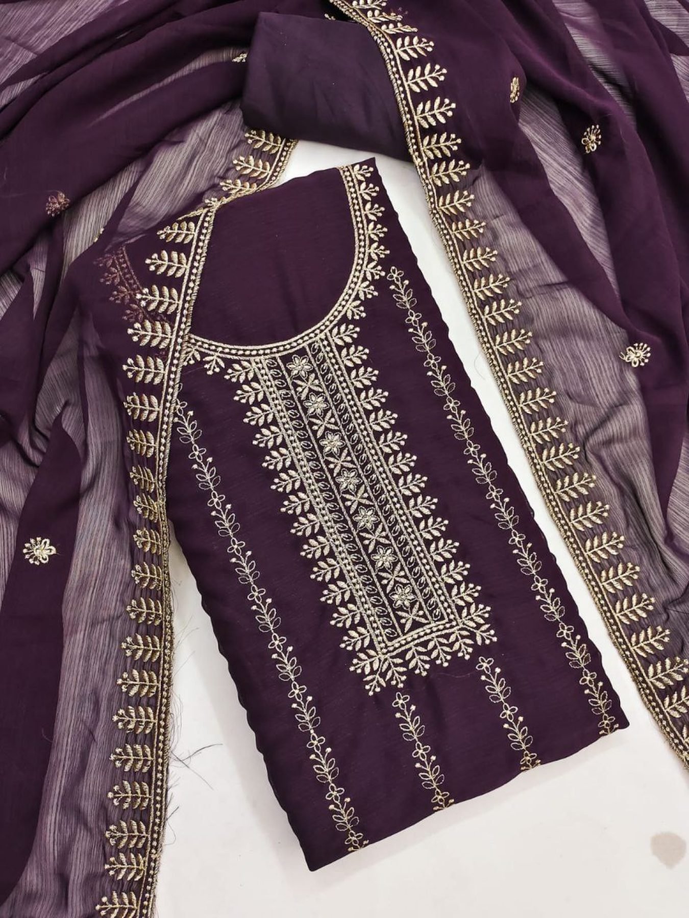 Purple Zomato Silk Suit With Heavy Embroidery and Dupatta Festive Look