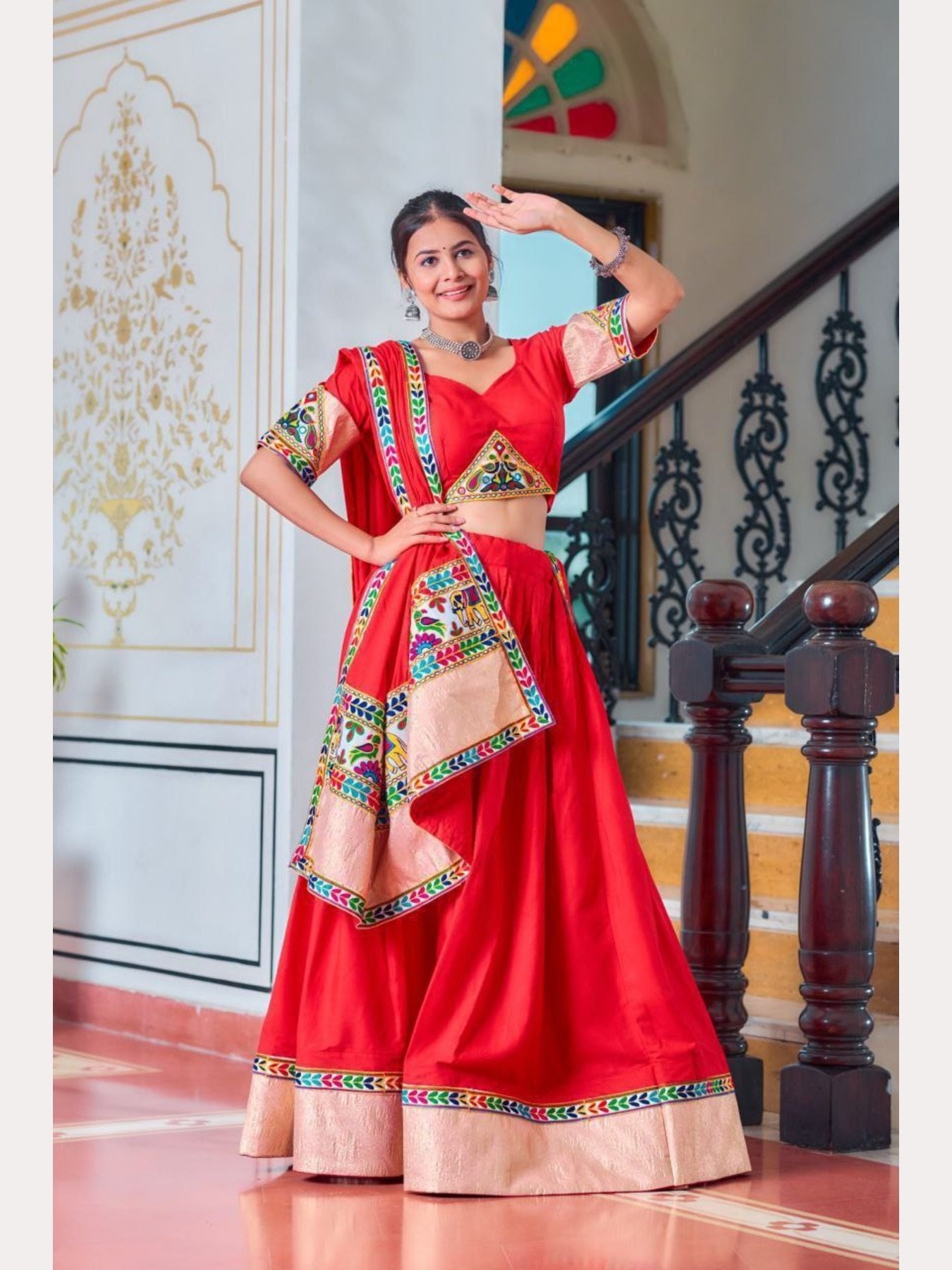 Red Color Fully Stitched Navratri Special Pure Rayon Lehenga Choli Collection
