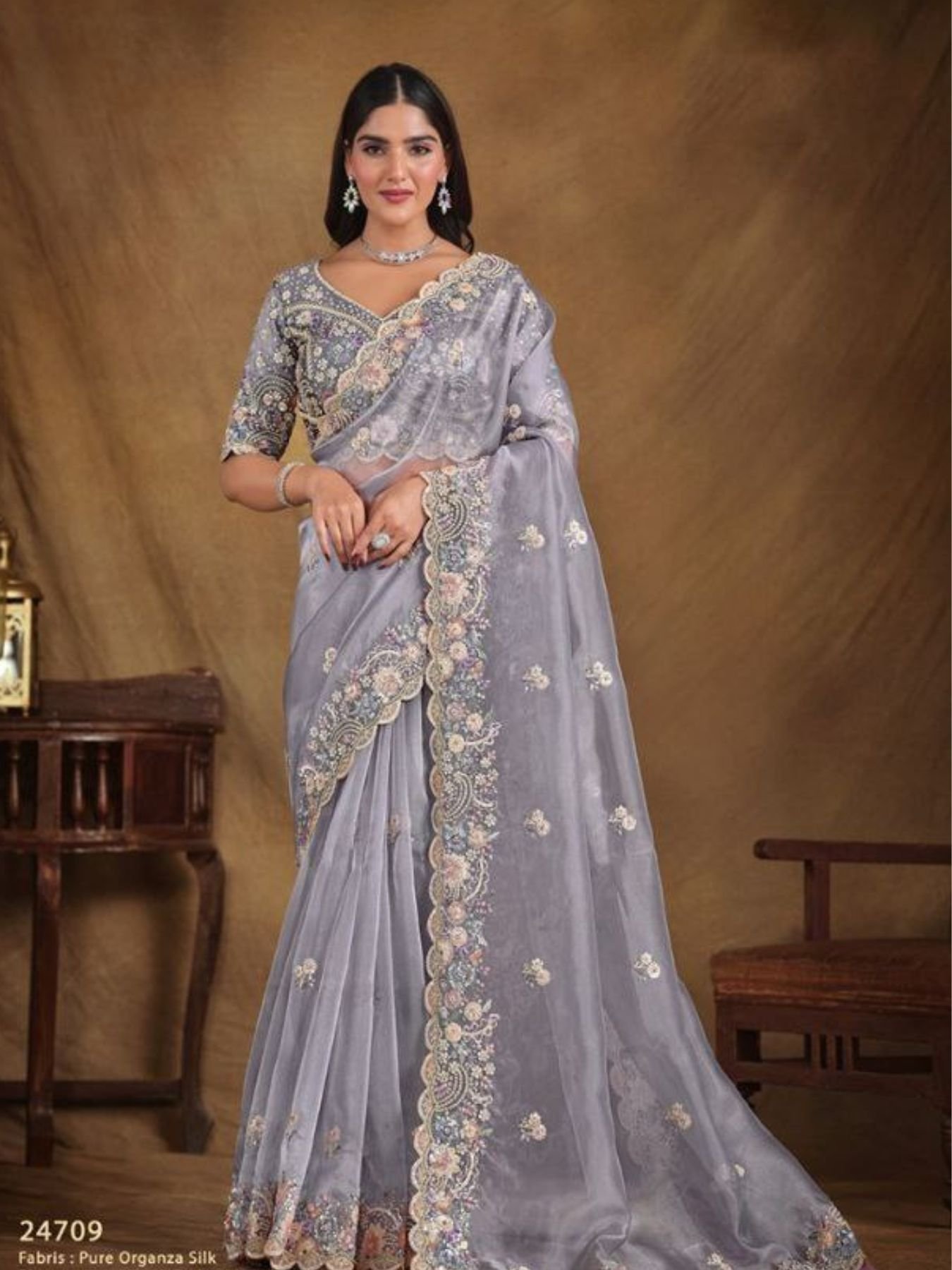 Regal Bloom Ensemble Smooth Fall Saree with Statement Embroidery for Evening Elegance