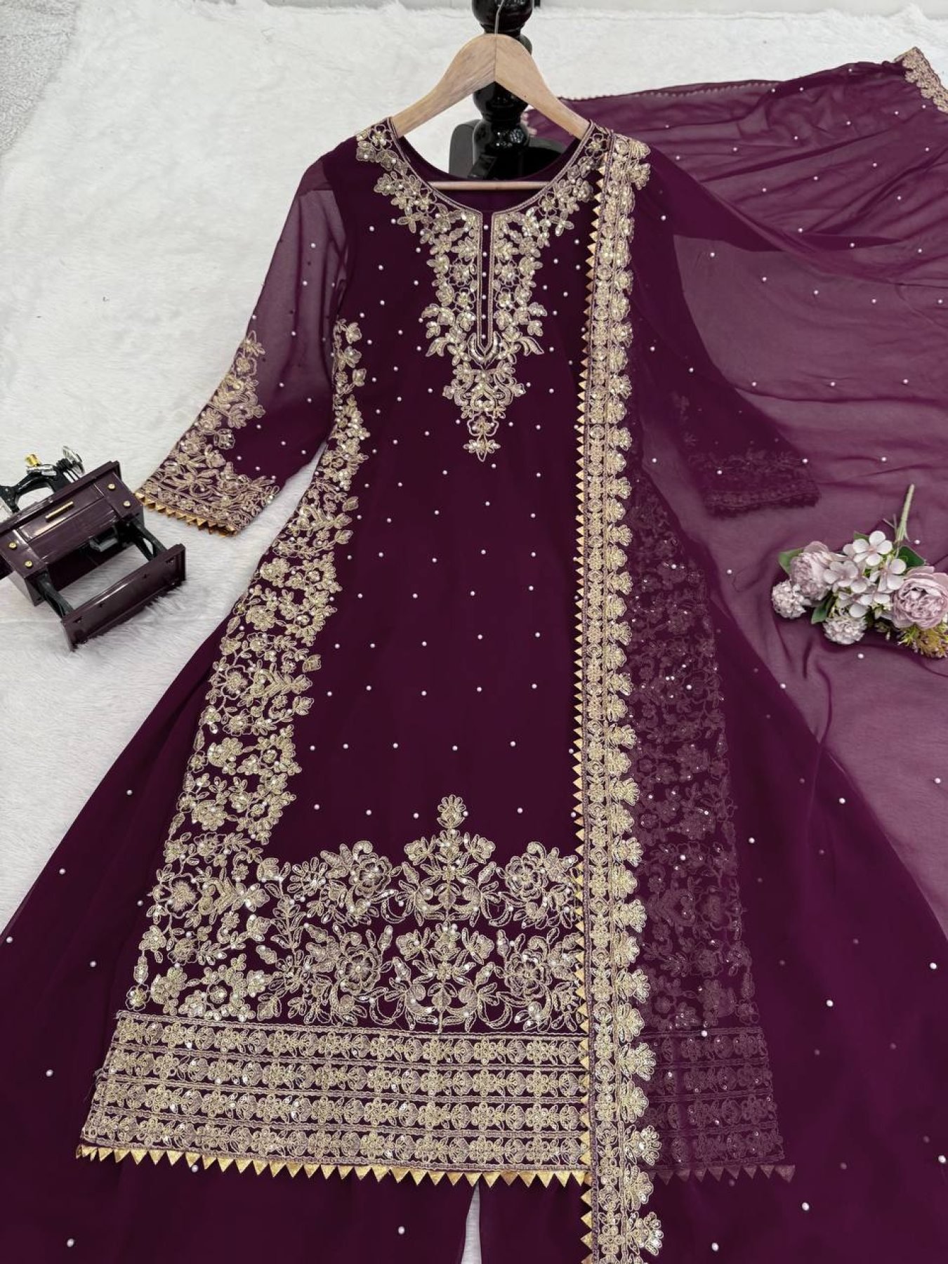 Regal Party Wear Georgette Top-Plazzo Set with Embroidery Work at Wholesale Rate