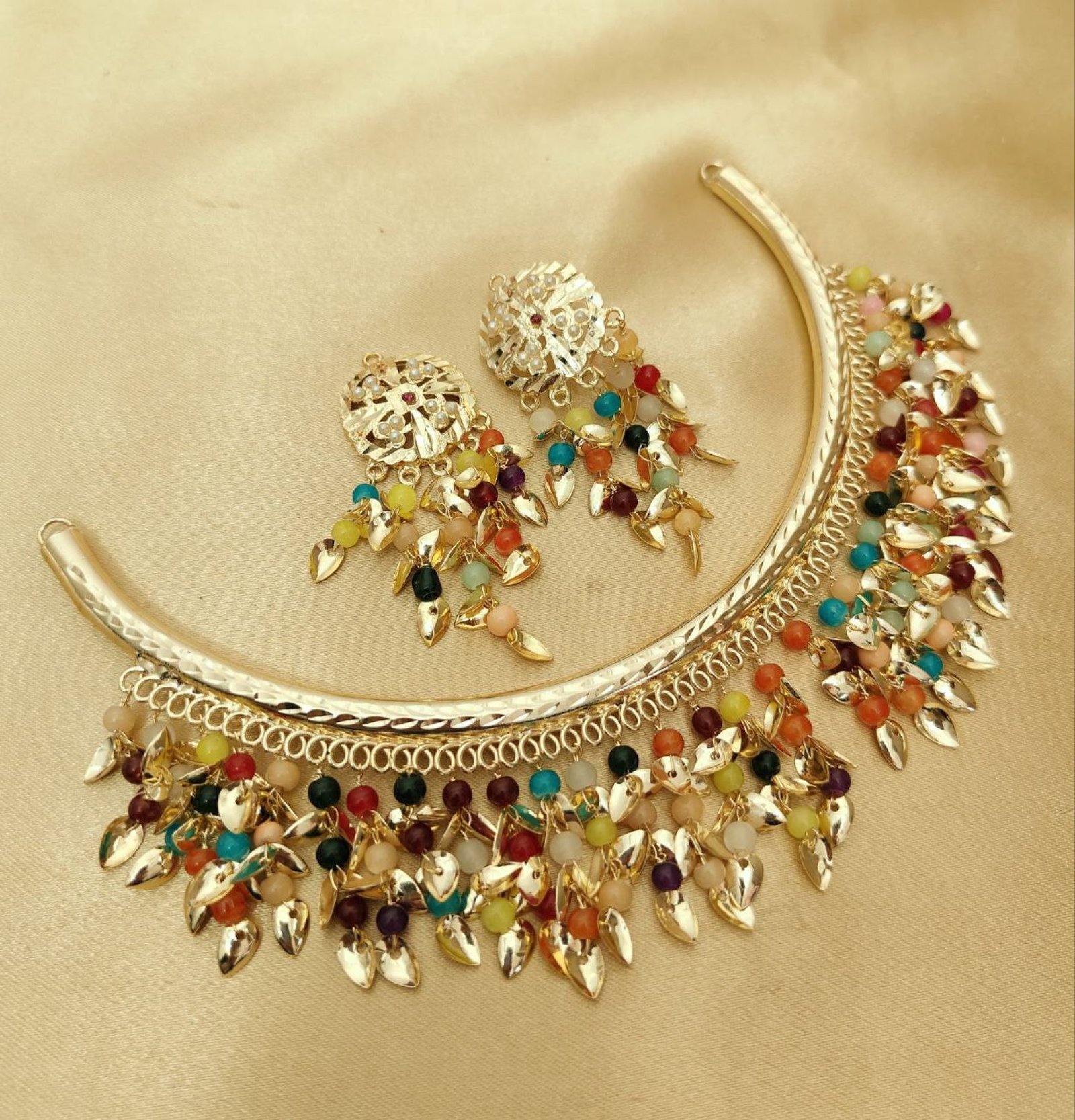 Exude royal charm with this premium Jadau Hasli necklace set, paired with elegant matching earrings. Crafted with intricate detailing and traditional craftsmanship, itβs a timeless accessory for bridal, festive, or ethnic wear. Ideal for boutiques, resellers, and wholesale jewelry suppliers.