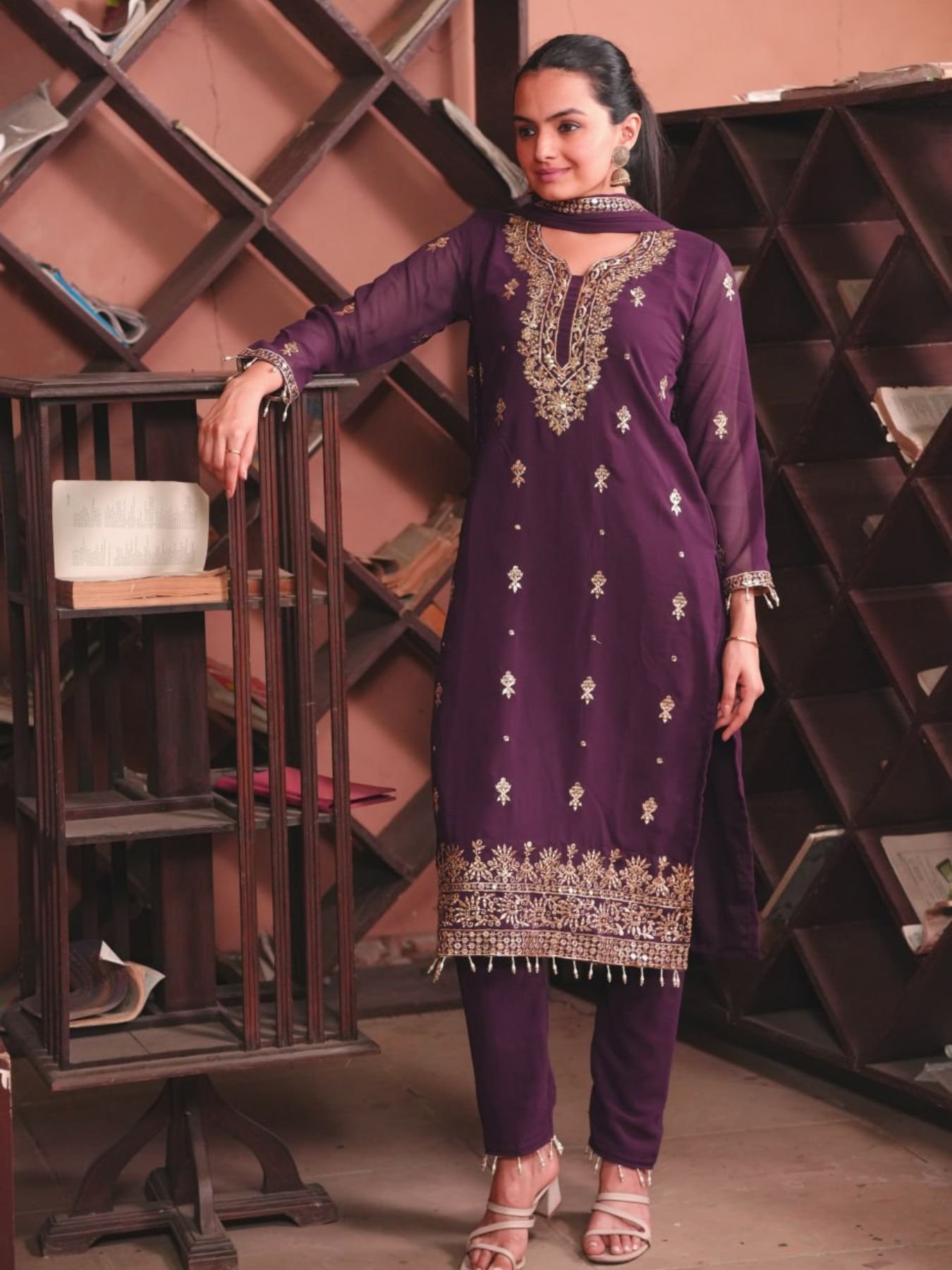 Royal Purple Georgette 3pc Set with Sequin Embroidery Dupatta Perfect for Celebrations