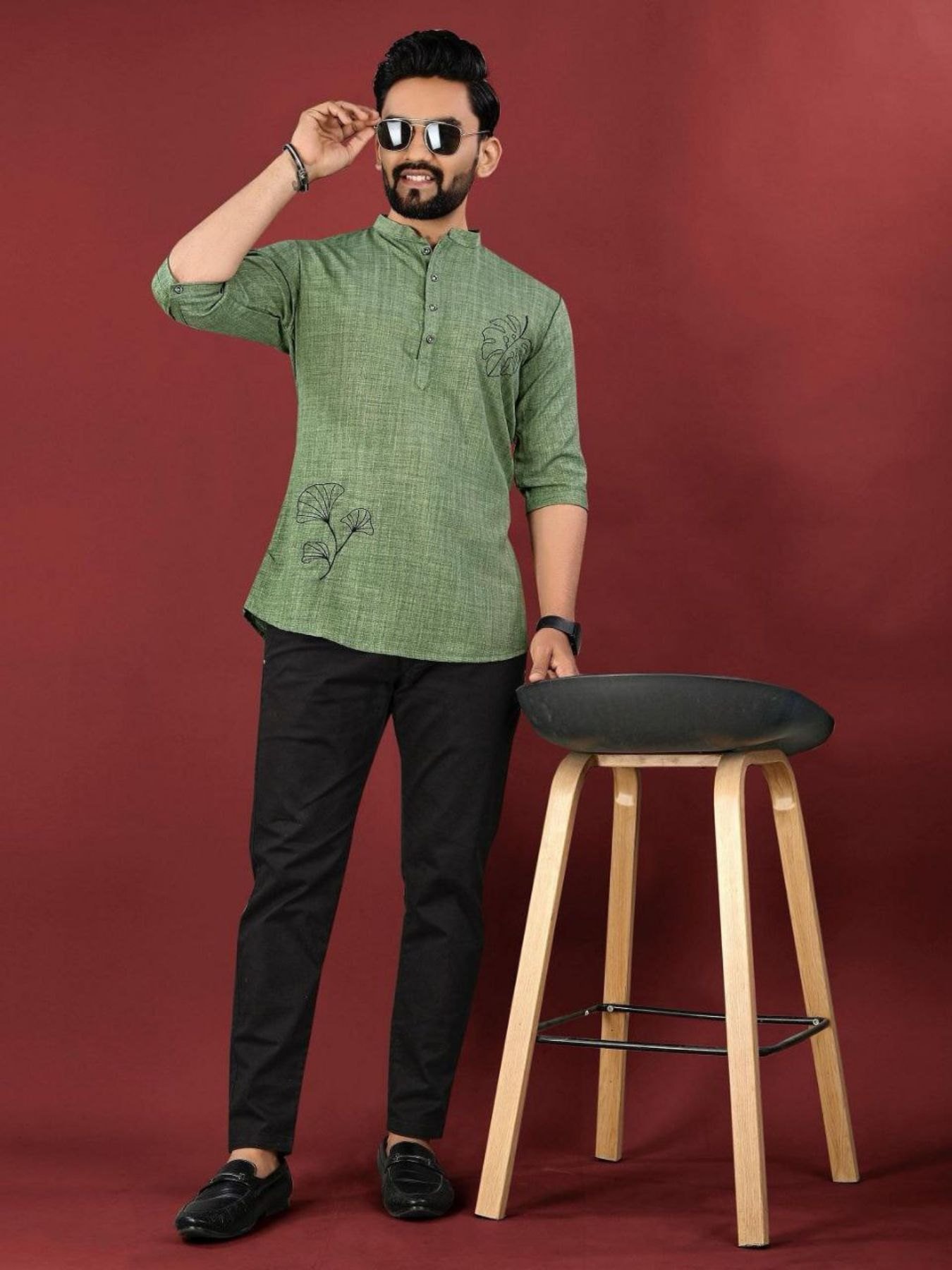 Add effortless style to your ethnic wardrobe with this Men’s Cotton Short Kurta featuring a Chinese collar and roll-up sleeves. Crafted for comfort and movement, this kurta combines tradition with a modern touch. Ideal for both casual outings and festive occasions.