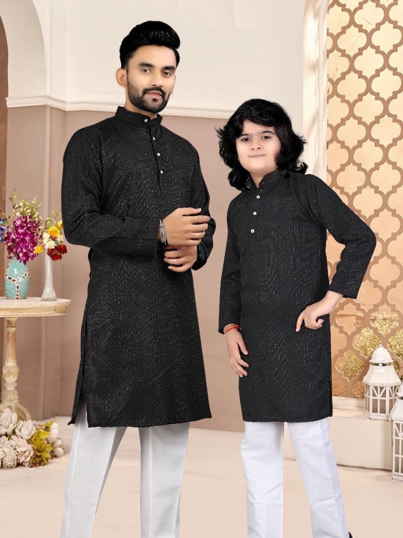 Stylish Black Sequence Kurta Pajama Set Father Son Matching Outfits for Diwali 2025