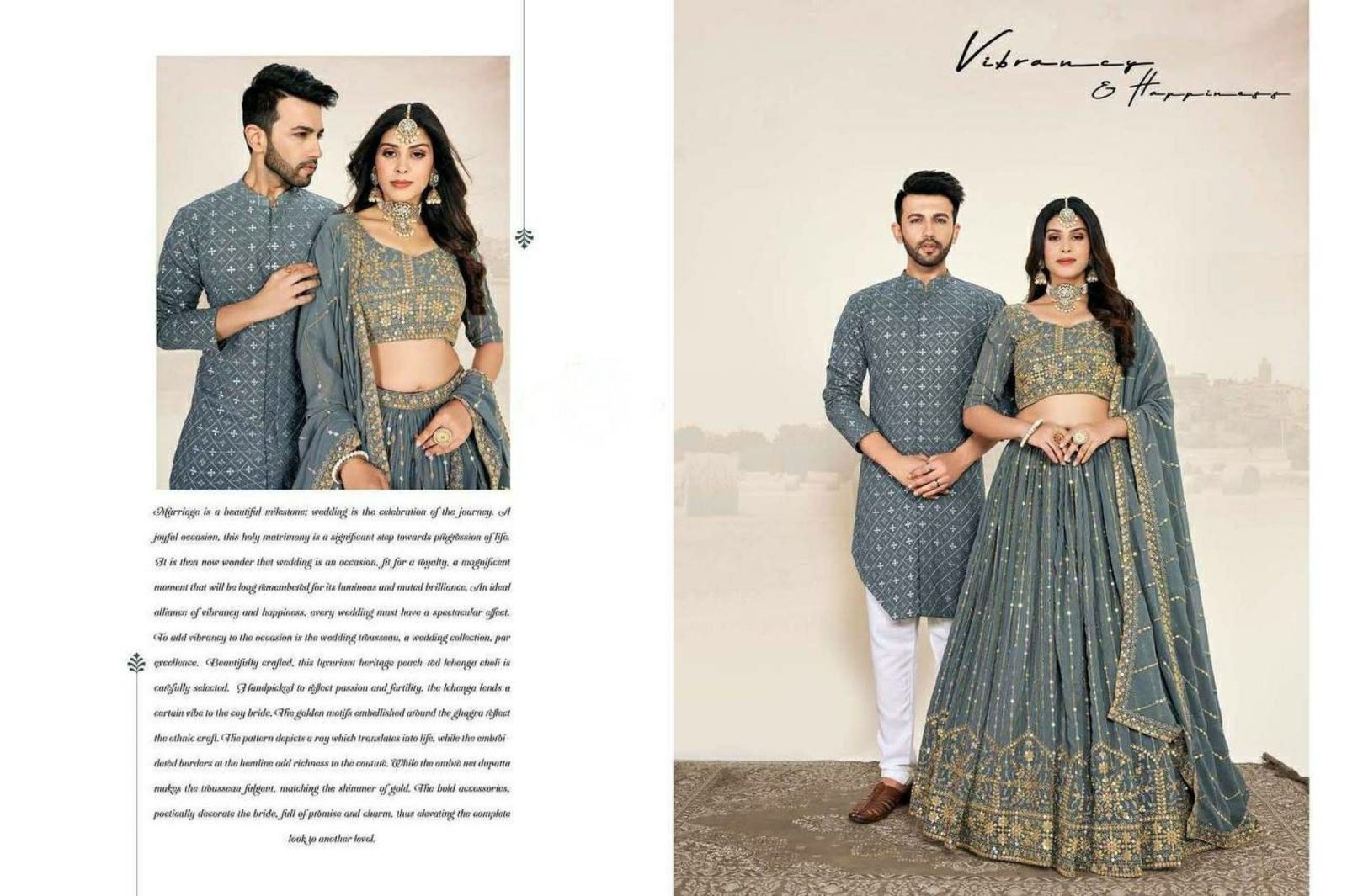 Traditional Couple Combo Embroidered Lehenga Choli and Mens Kurta Set for Festive Wear