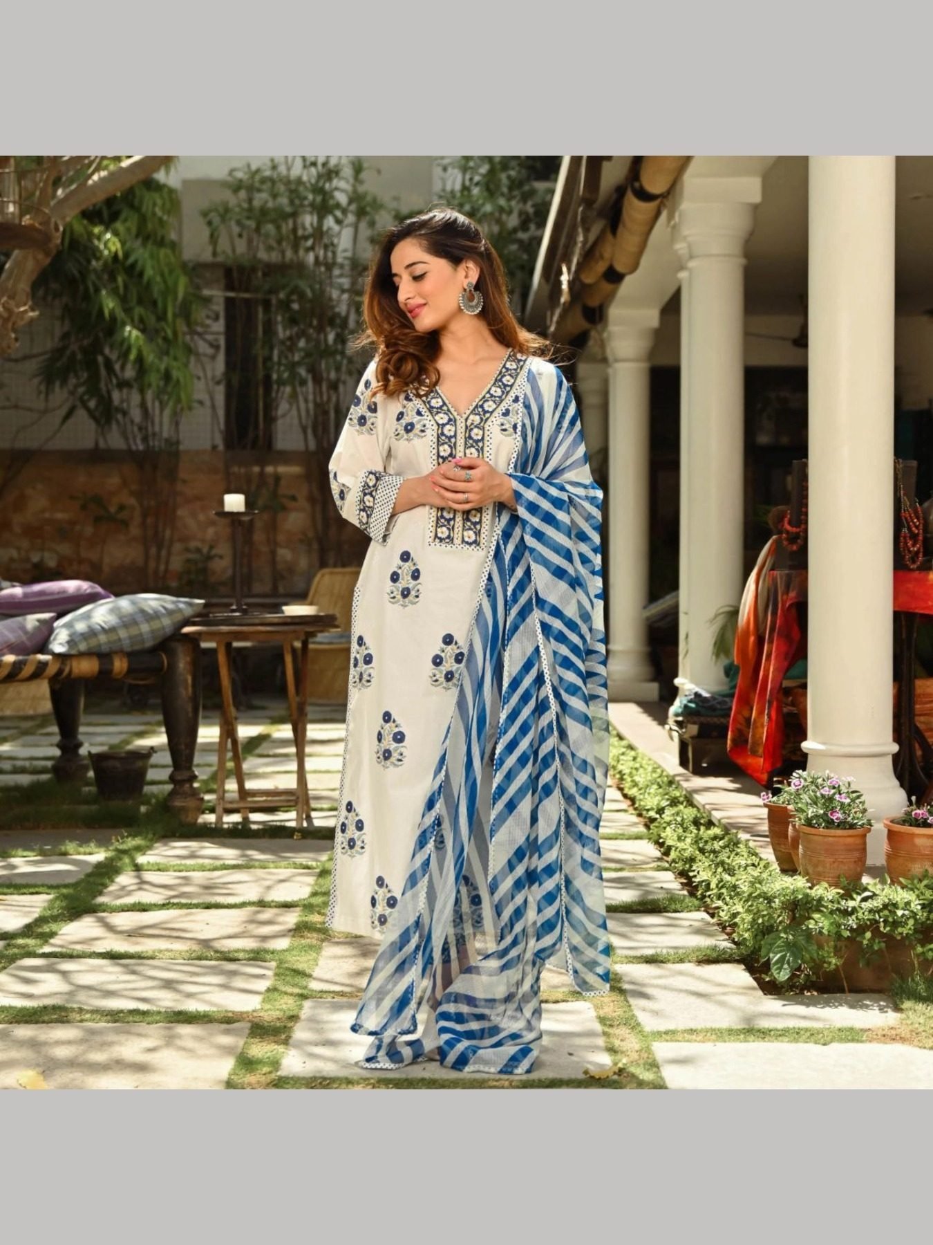 White Color Cotton Kurti Pant With Dupatta