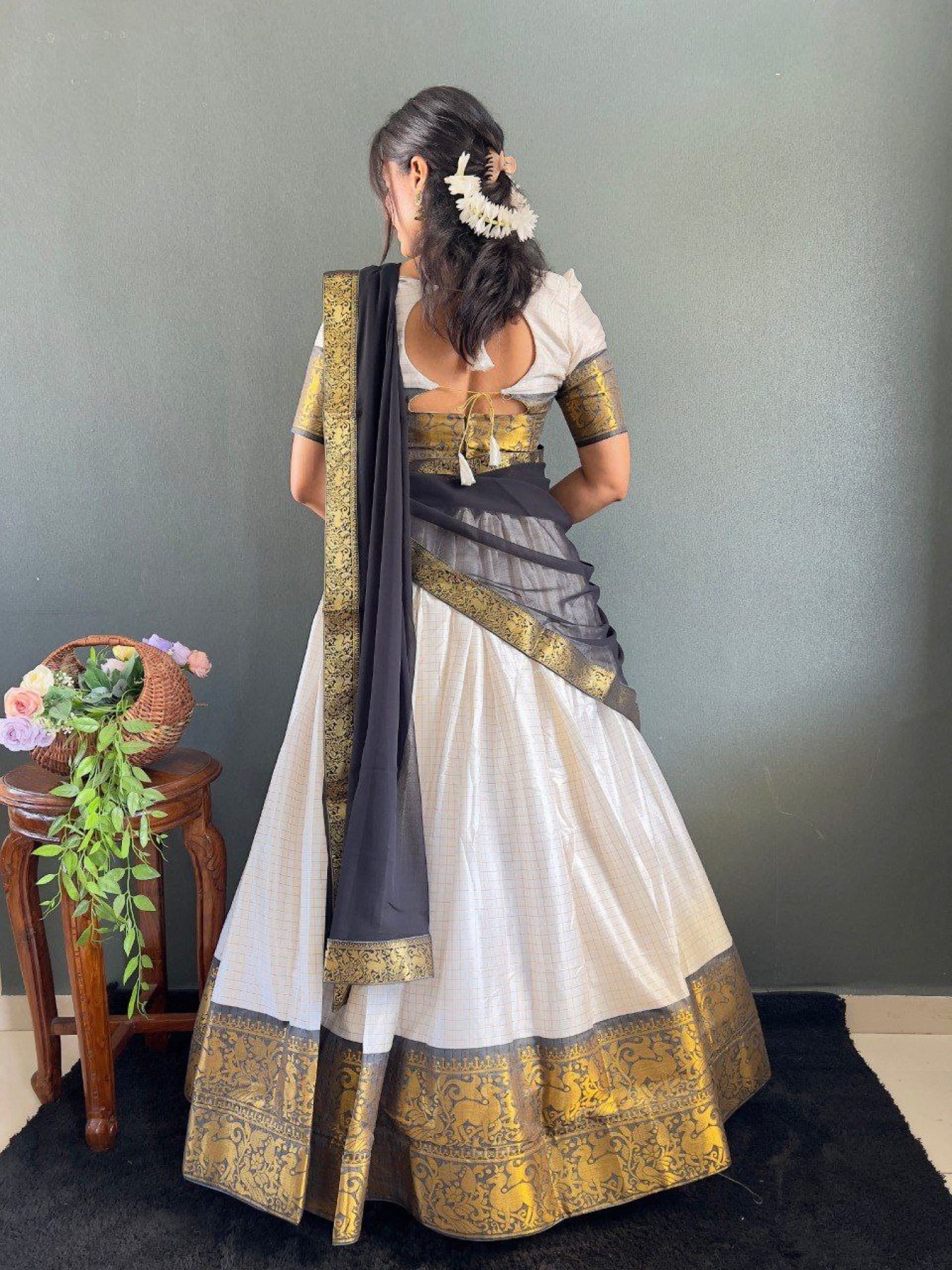 Woven Cotton Half Saree Style Lehenga Choli with Lace Dupatta South Indian Wedding Collection at Low Price