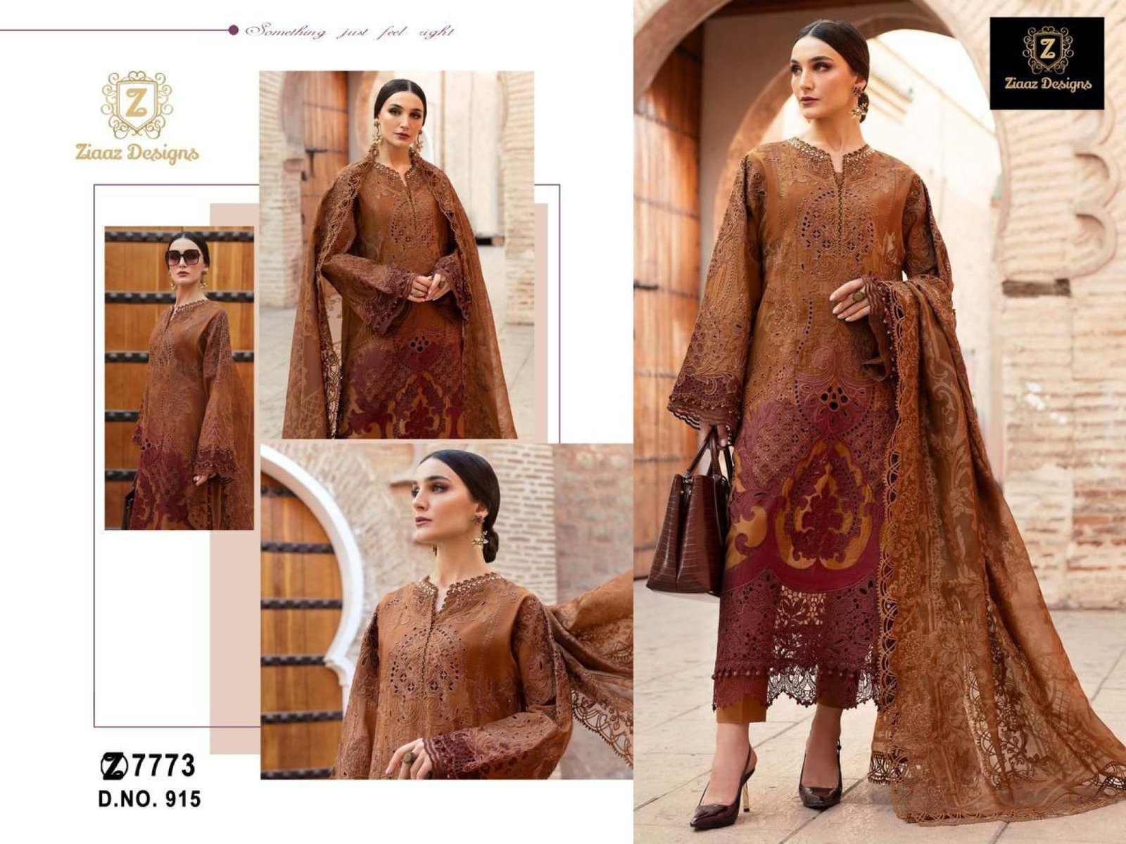 Ziaaz Designs Pakistani Cambric Cotton Embroidered Suit with Muslin Lawn Dupatta