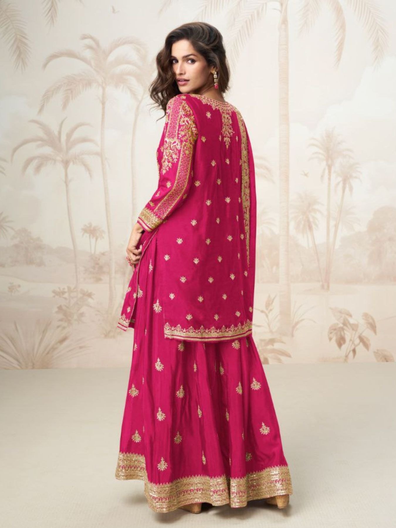Elevate your ethnic wear collection with this premium 3-piece set in luxurious chinnon silk. Designed with elegance and comfort in mind, it includes a beautifully tailored top, matching bottom, and dupatta—all crafted from high-quality chinnon fabric. Ideal for festive occasions, parties, and wholesale reselling.