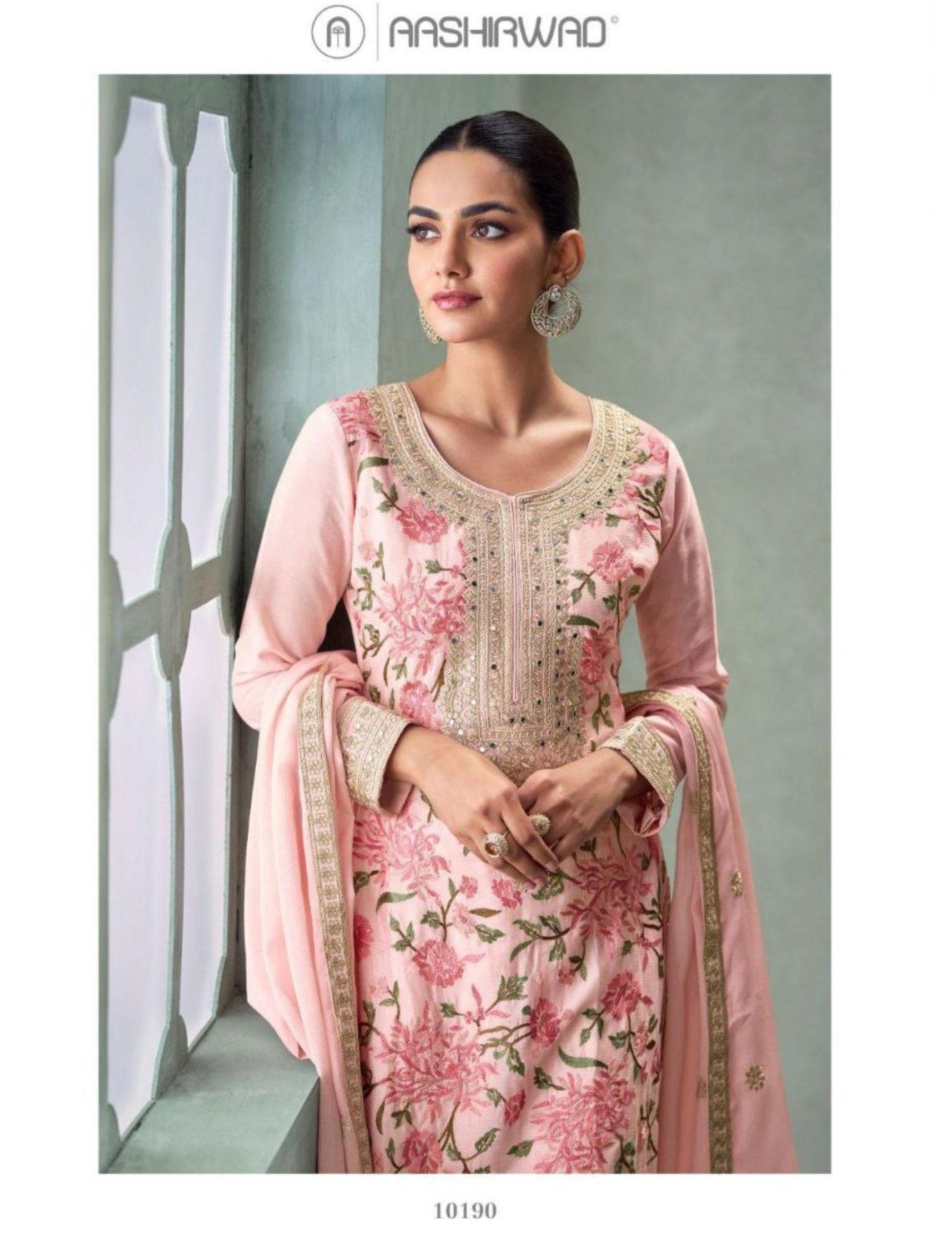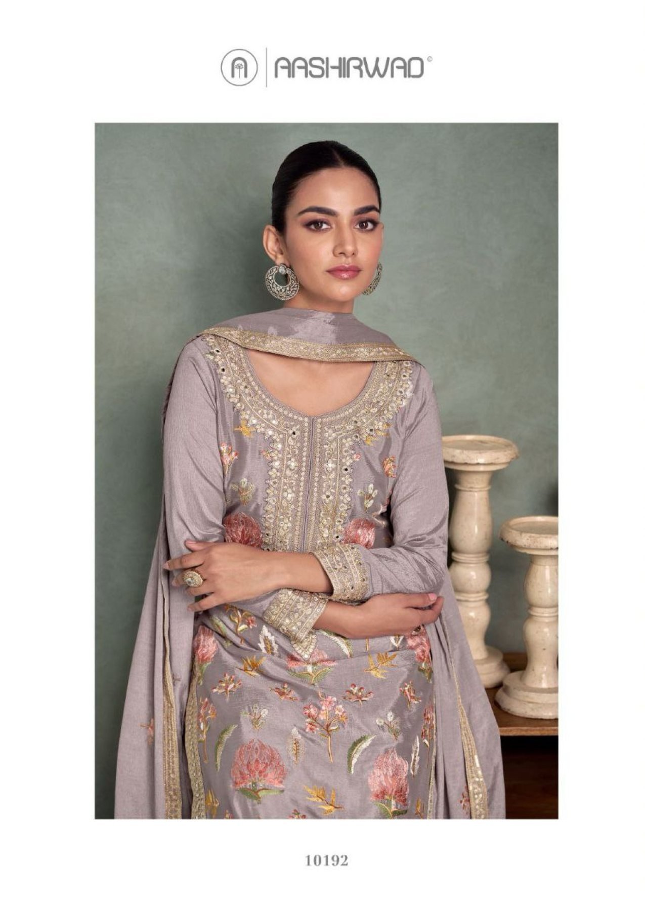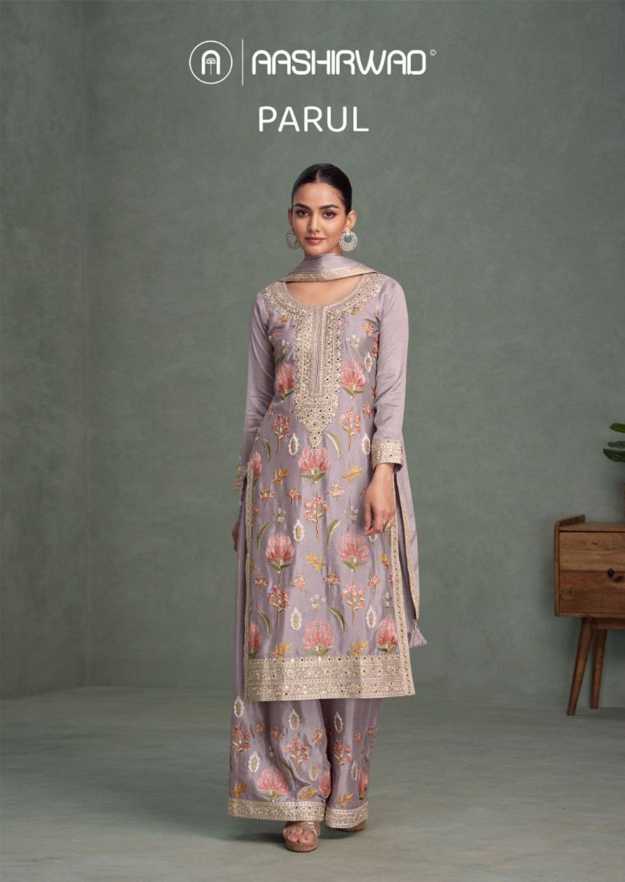 AASHIRWAD CREATION PARUL CHINNON SILK PLAZZO SUIT
