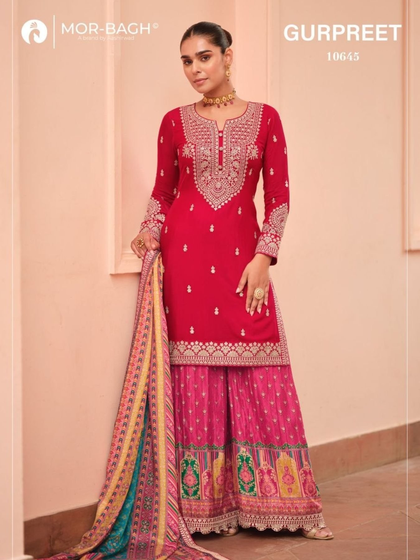 Aashirwad Mor-Bagh Pink Palazzo Salwar Suit From Gurpreet