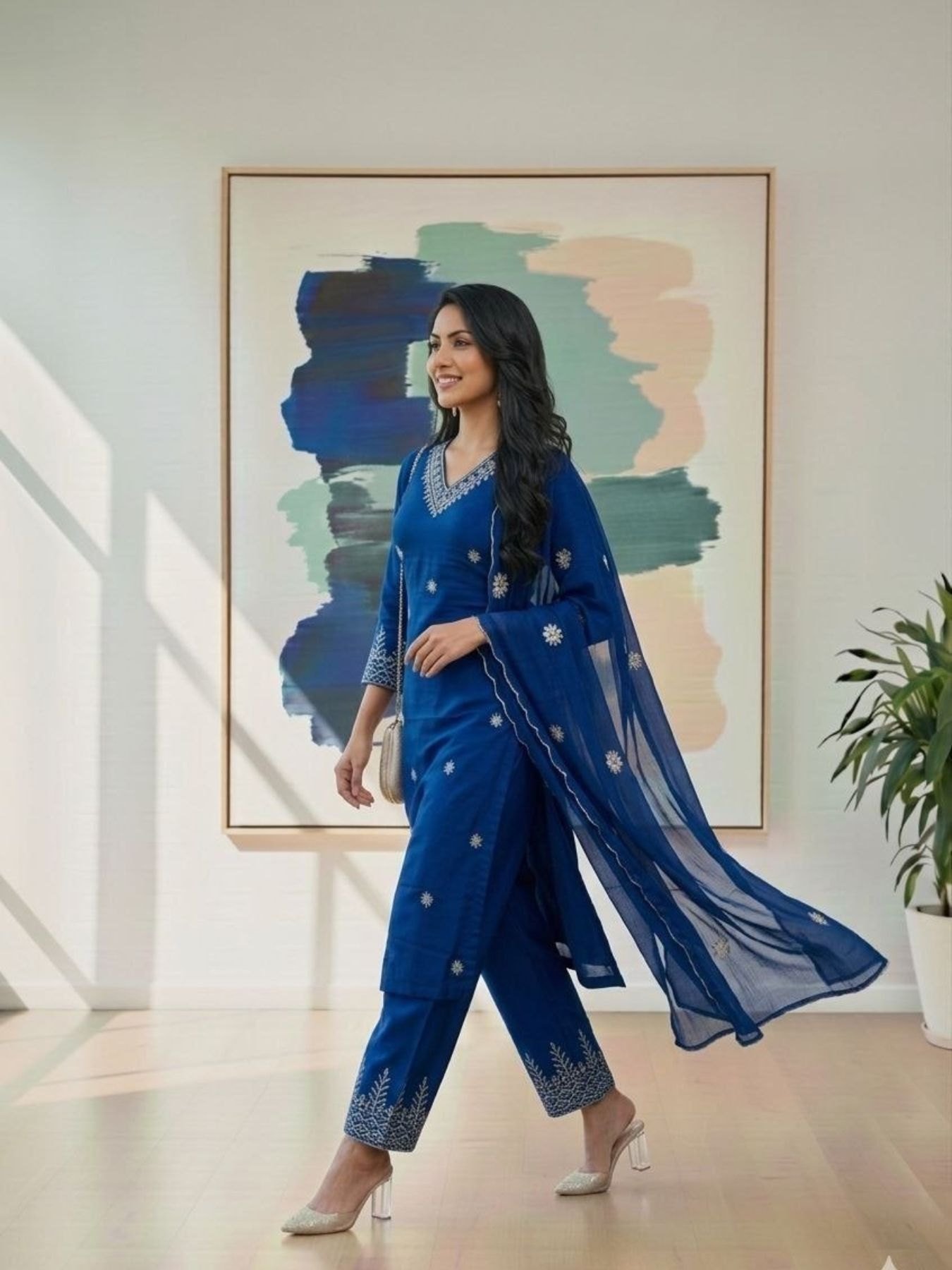 Trendy kurta set crafted in rayon cotton featuring elegant embroidery work paired with a stylish net dupatta. Designed for comfort and style, this outfit is perfect for daily wear, casual outings, and festive occasions.