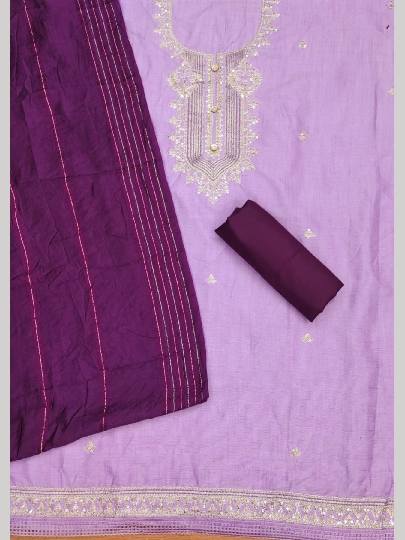 Adorable Heavy rayon Lavender Color Dress Material with A Durable Heavy Cotton Bottom And Dupatta