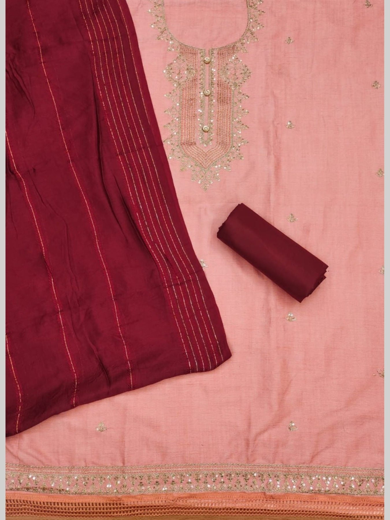 Adorable Heavy rayon Pink Color Dress Material with A Durable Heavy Cotton Bottom And Dupatta